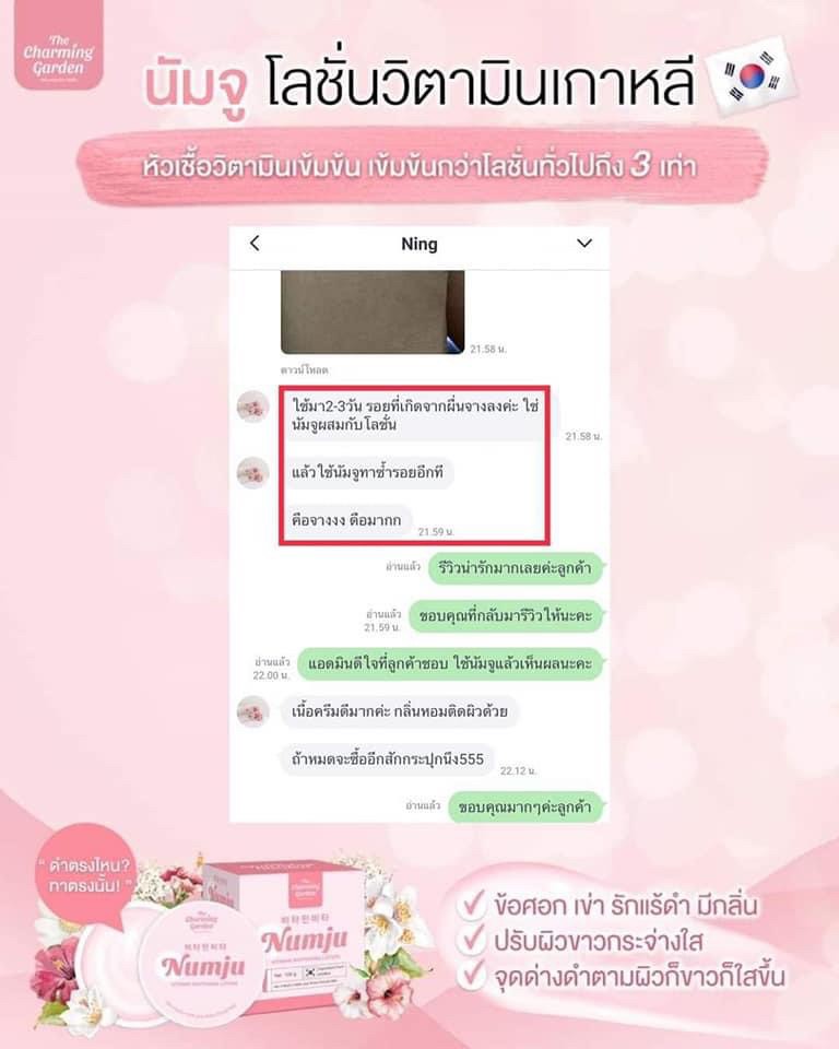 ขอรีวิวนัมจู หัวเชื้อ numju หน่อยนะคะ ใช้ดีมากๆเลยค่ะ รู้สึกว่าผิวใสขึ้นมาก กลิ่นก็หอมชอบมากๆเลยค่ะ จะสั่งอีกแน่นอน |