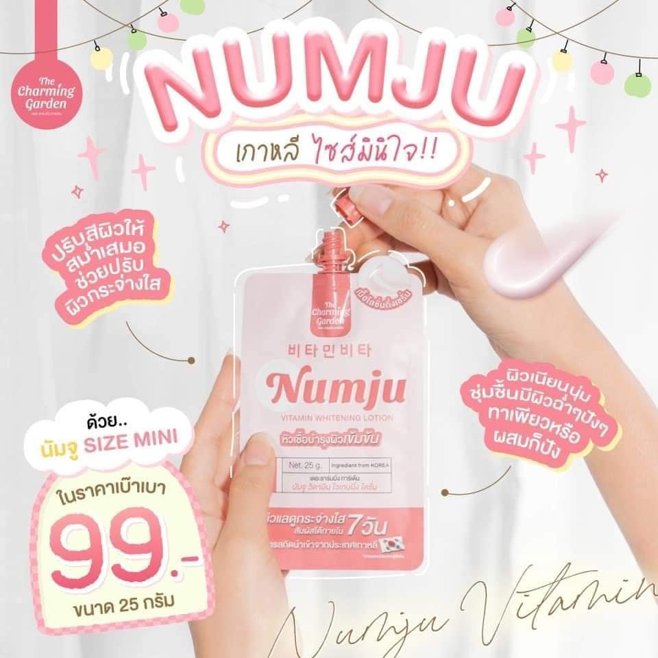 เปิดตัวน้องใหม่ นัมจู แบบซอง สะดวก พกพาง่าย Numju size mini แบบซอง พกพาสะดวก ไปไหน มาไหน ก็สวยได้ ปรับสีผิวให้สม่ำเสออ ช่วยปรับผิวกระจ่างใส ผิวเนียนนุ่ม ชุ่มชื้น มีผิวฉ่ำๆปัง ทาเพียว หรือผสมก็ปัง ในราคาเบ๊าเบา 99 บาท 1 ซอง ขนาด 25 กรัม |
