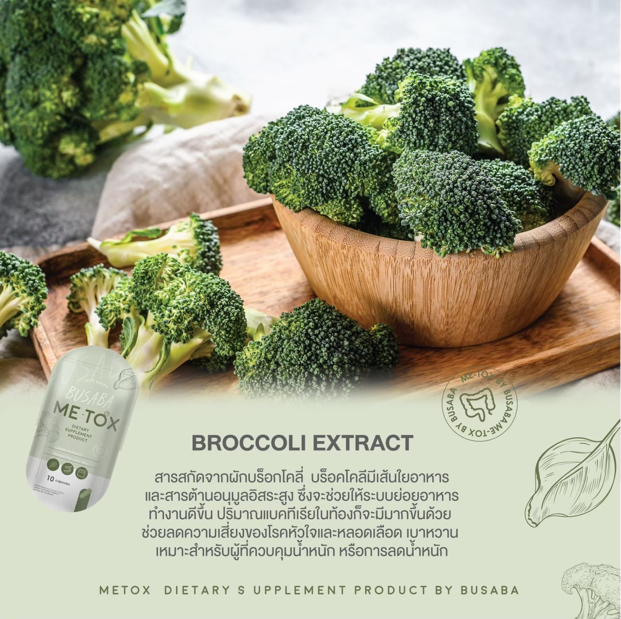 BROCCOLI EXTRACT สารสกัดจากผักบร็อกโคลี่ บร็อกโคลี่มีเส้นใยอาหาร และสารต้านอนุมูลอิสระสูง ซึ่งจะช่วยให้ระบบย่อยอาหารทำงานดีขึ้น ปริมาณแบคทีเรียในท้องก็จะมีมากขึ้นด้วย ช่วยลดความเสี่ยงของโรคหัวใจและหลอดเลือด เบาหวาน เหมาะสำหรับผู้ที่ควบคุมน้ำหนัก หรือการลดน้ำหนัก  |
