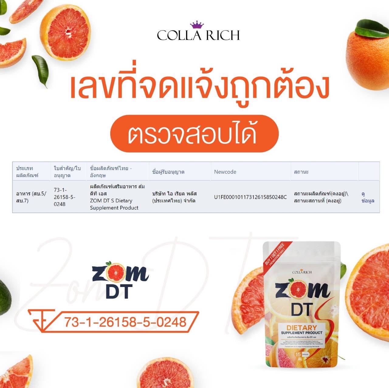 อย. 73-1-26158-5-0248 ผลิตภัณฑ์เสริมอาหาร ส้ม ดีที เอส ZOM DT S Dietary Supplement Product |