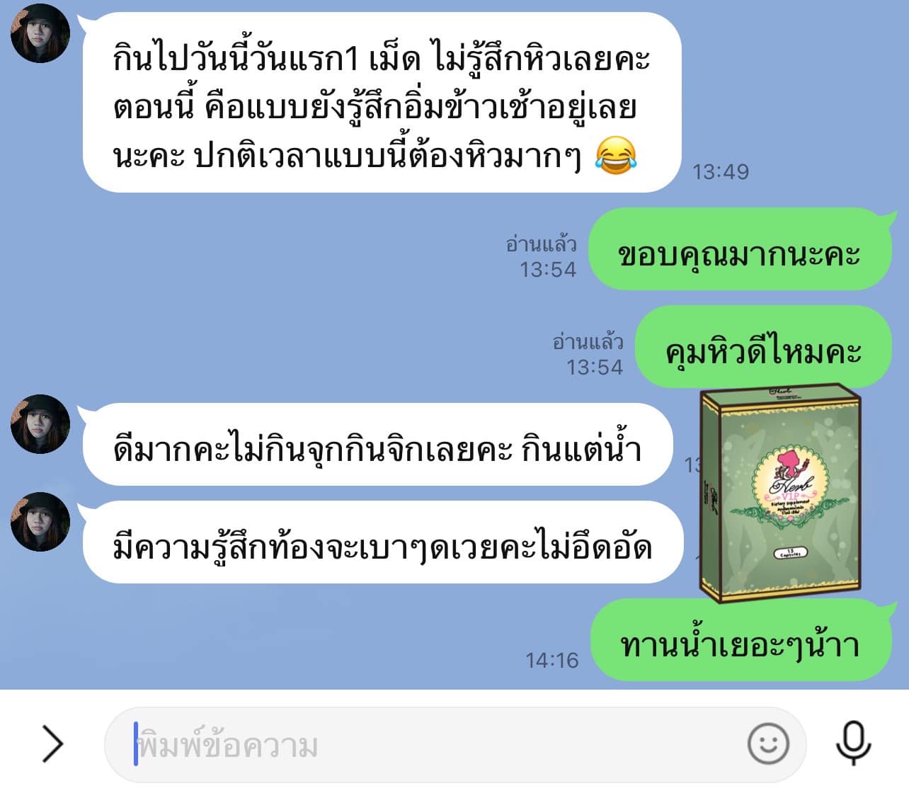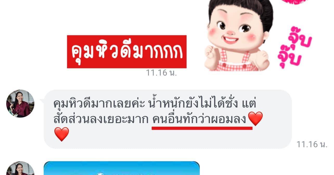 คุมหิวดีมากเลยค่ะ น้ำหนักยังไม่ได้ชั่ง แต่สัดส่วนลงเยอะมาก คนอื่นทักว่าผอมลง |