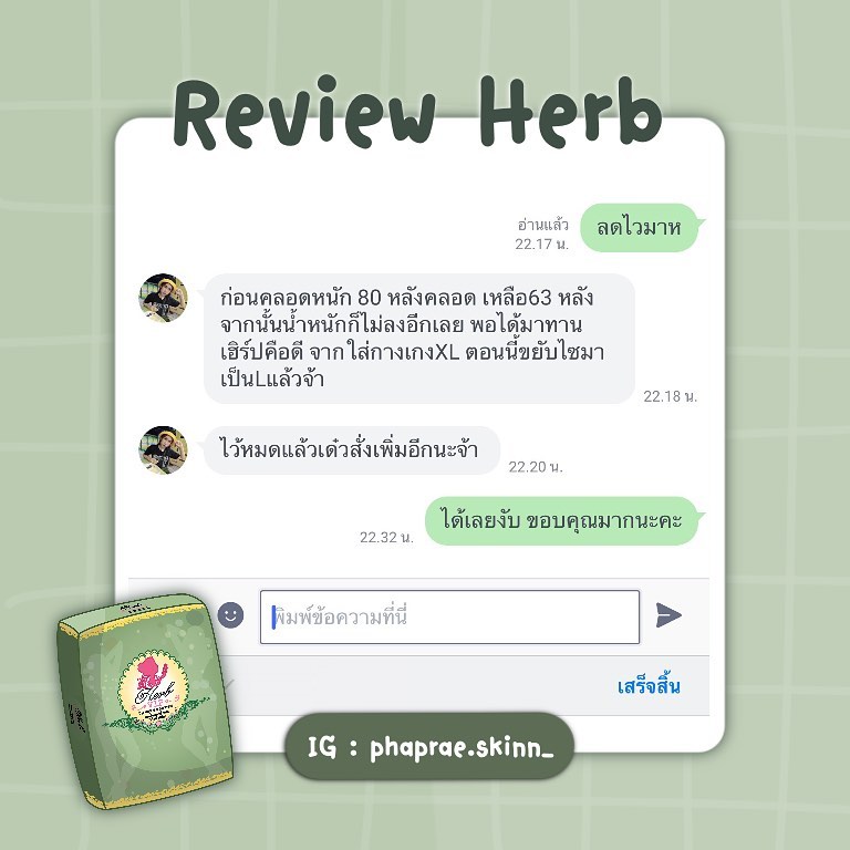 มารีวิวค่ะ ทานเฮิร์บได้ 1 เดือน 21 วันค่ะแม่ค้า ปลื้มเฮิร์บมาก เป็นคนดื้อยา แต่เจอเฮิร์บคือยอมค่ะ |