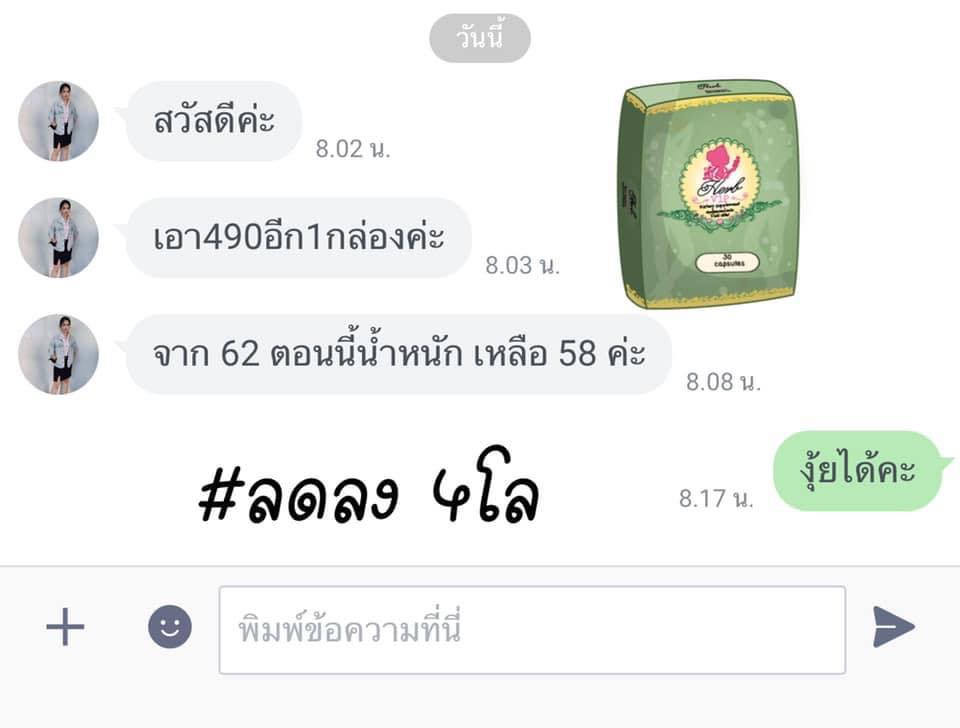 สวัสดีค่ะ เอา 490 อีก 1 กล่องค่ะ จาก 62 ตอนนี้น้ำหนักเหลือ 58 ค่ะ |