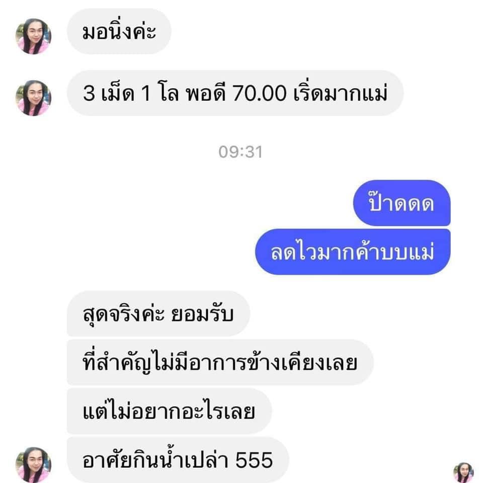 3 เม็ด 1 โล พอดี 70.00 เลิศมากแม่ สุดยอดค่ะยอมรับ ที่สำคัญไม่มีอาการข้างเคียงเลย แต่ไม่อยากกินอะไรเลย อาศัยกินน้ำเปล่า555 |