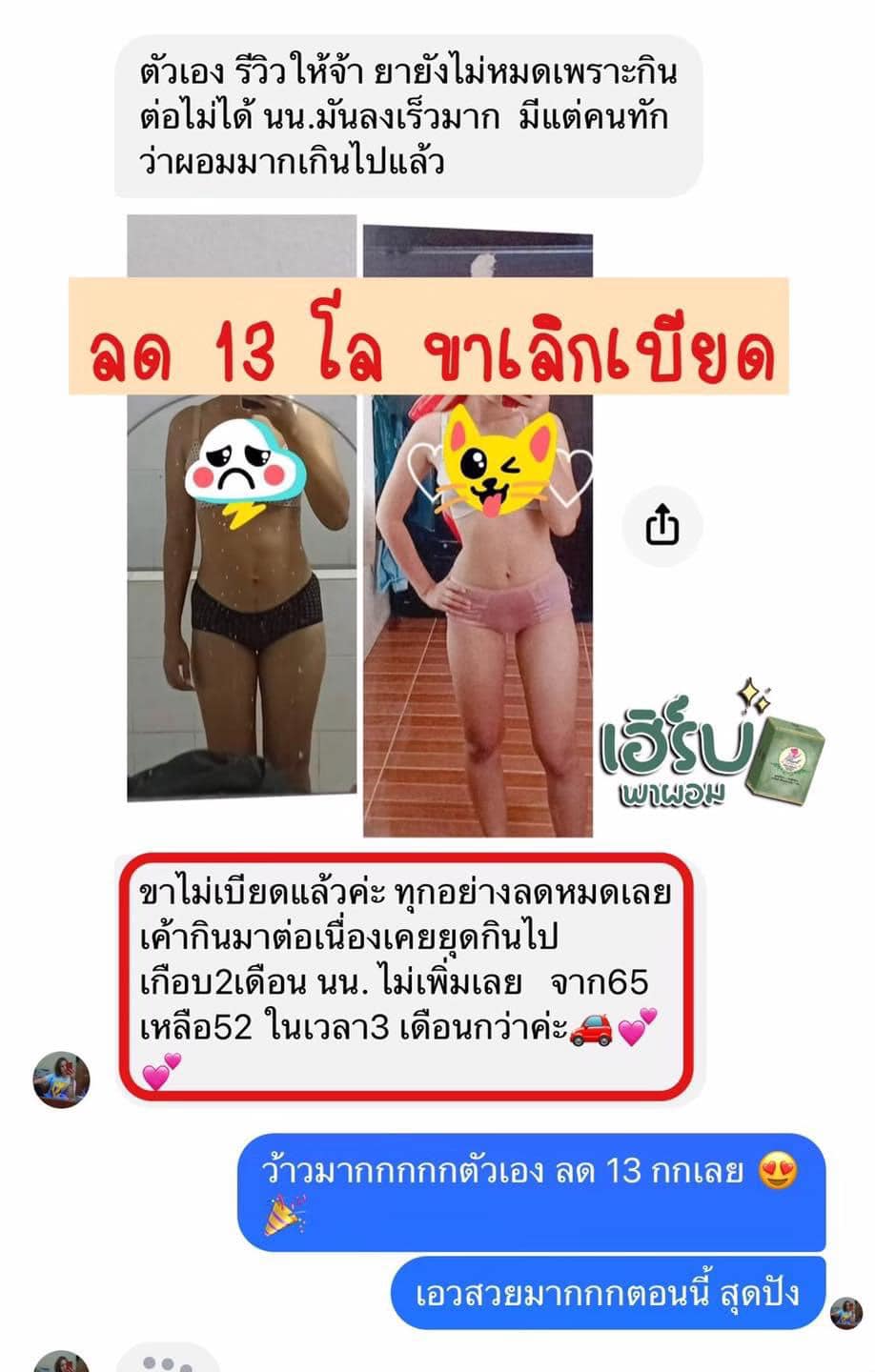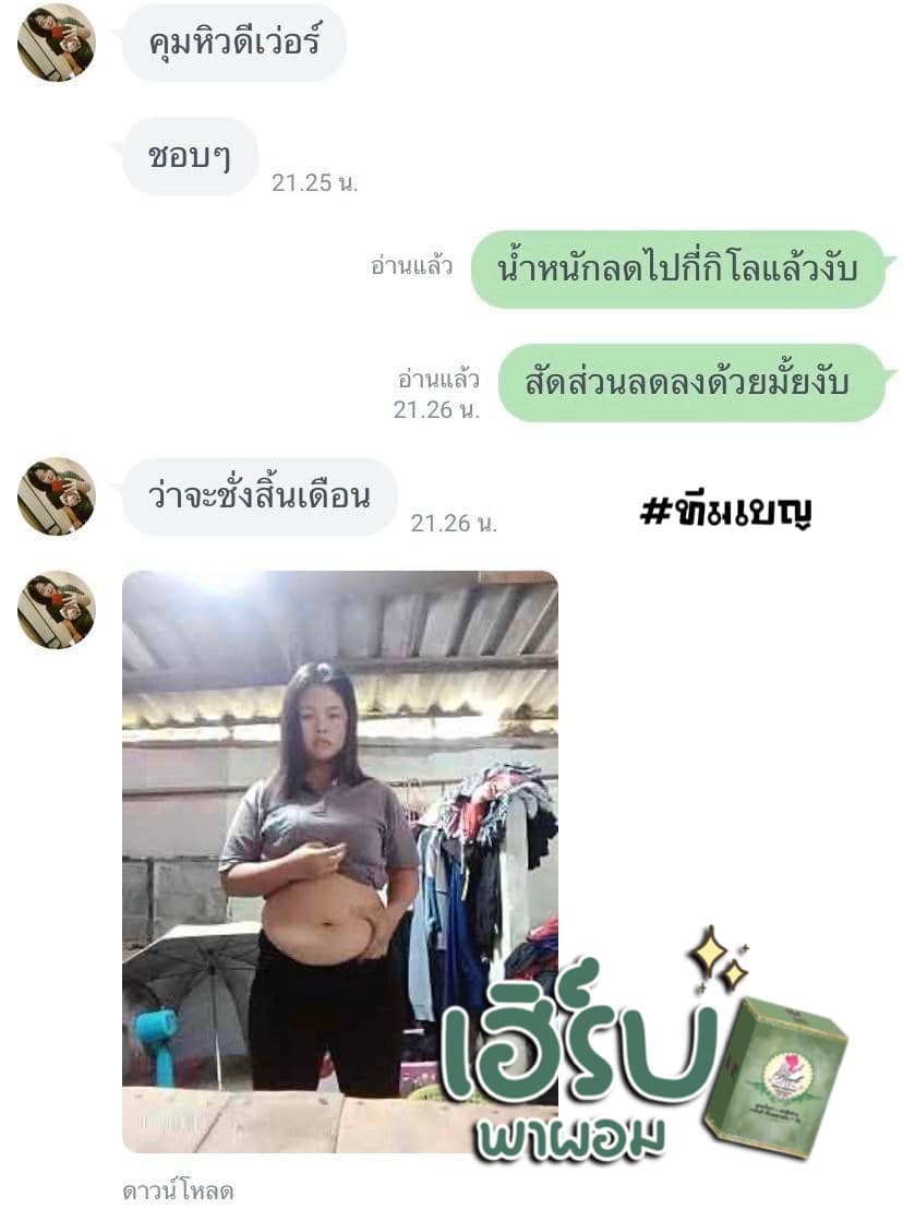 ก่อนคลอดหนัก 80 หลังคลอด เหลือ 63 หลังจากนั้นน้ำหนักก็ไม่ลงอีกเลย พอได้มาทานเฮิร์ปคือดี จากใส่กางเกงXL ตอนนี้ขยับไซส์มาเป็นLแล้วค่ะ ไว้หมดแล้วเดี๋ยวจะสั่งเพิ่มนะคะ |