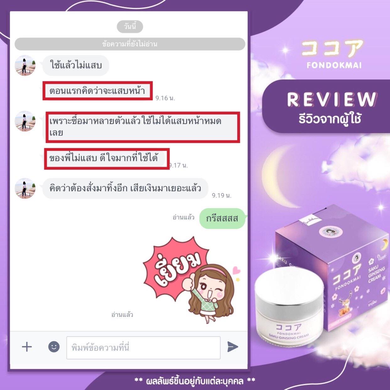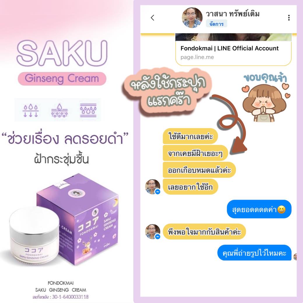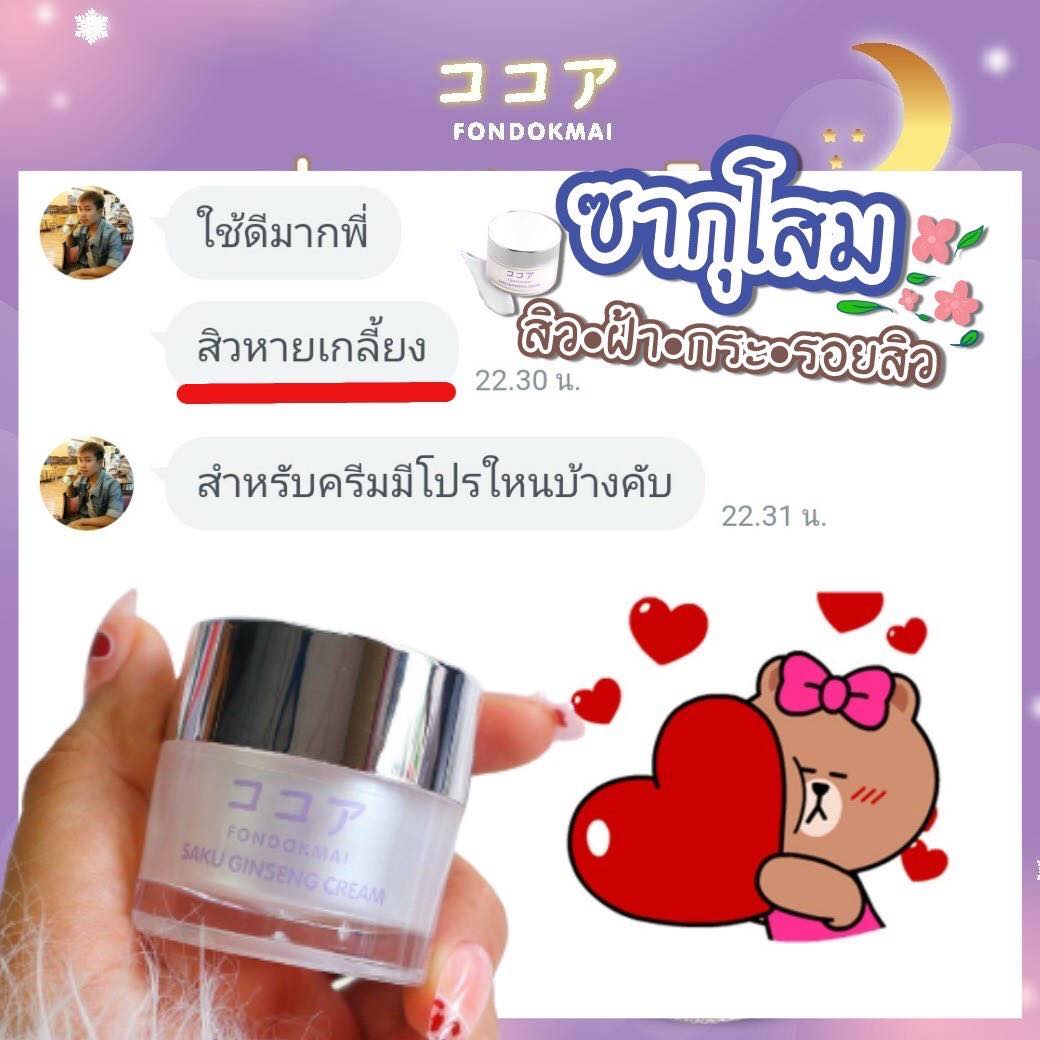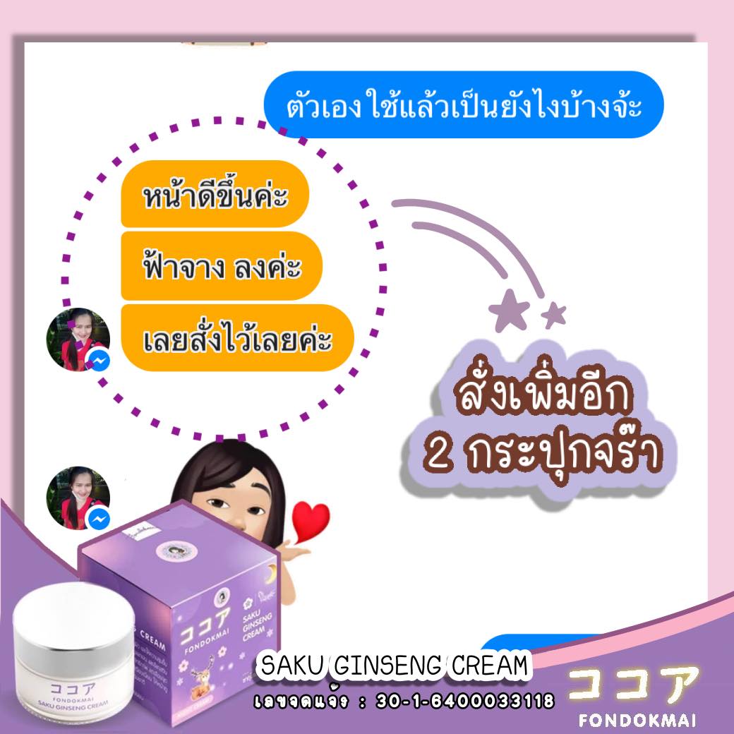ตัวเองใช้แล้วเป็นยังไงบ้างจ้ะ หน้าดีขึ้นค่ะ ฟ้าจาง ลงค่ะ FONDOKMAI SAKU GINSENG CREAM |