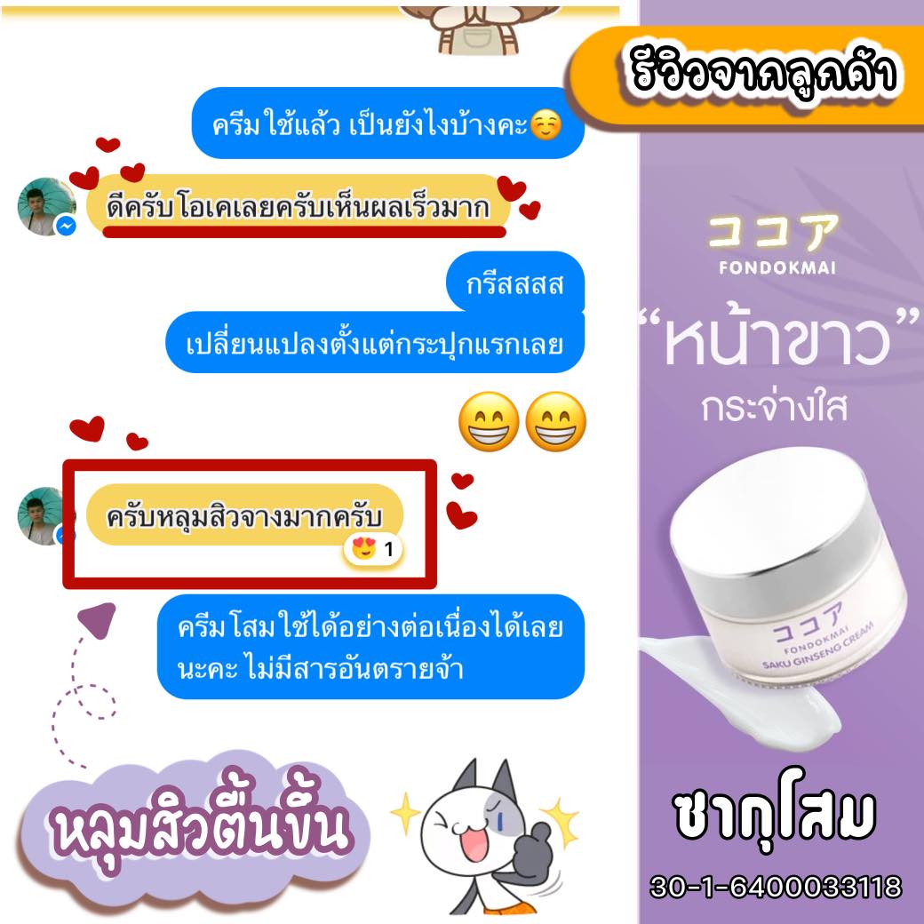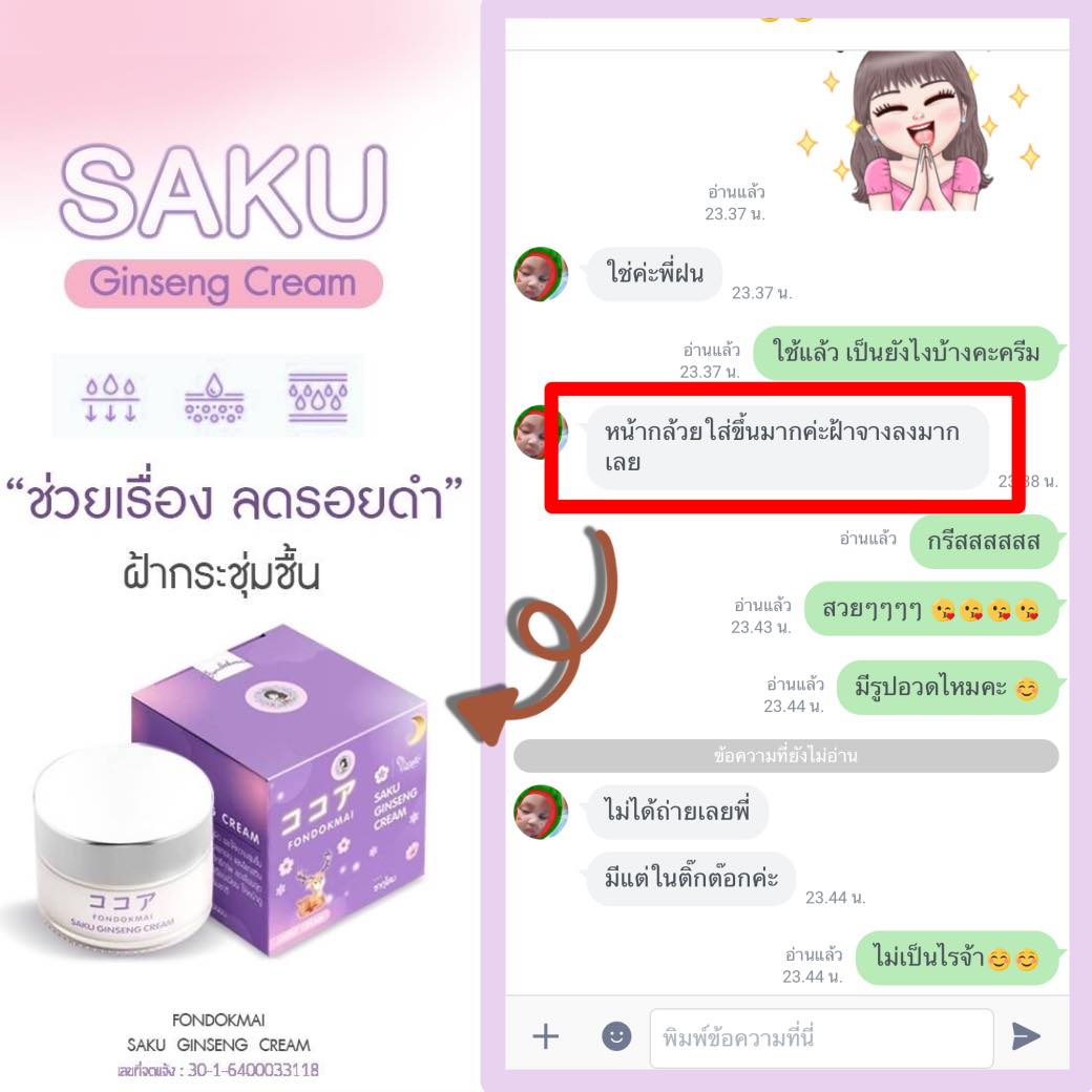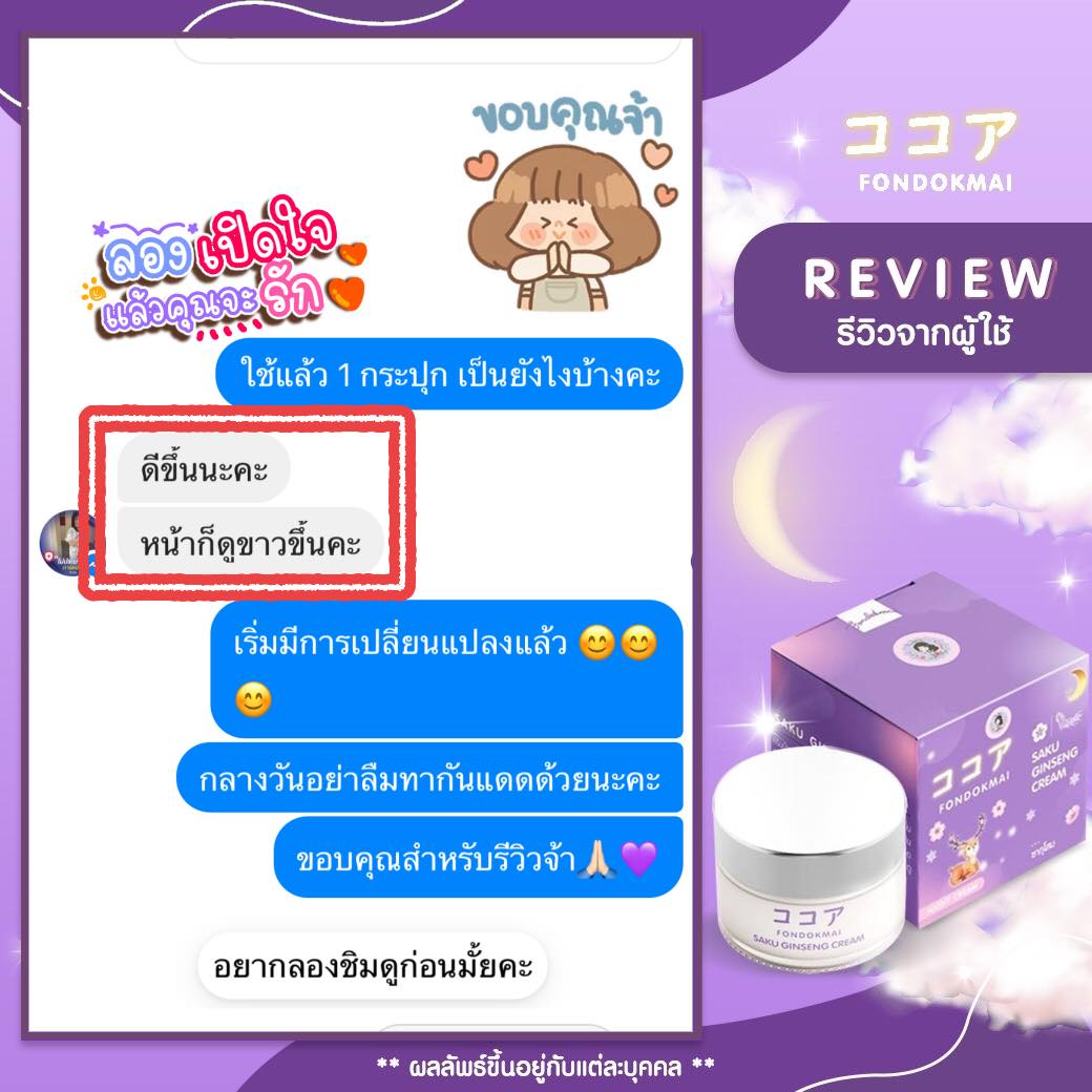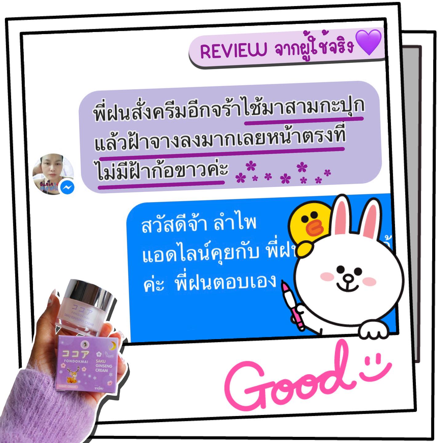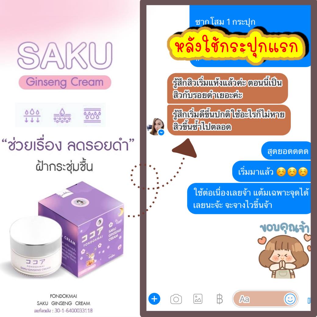 ตัวเองใช้แล้วเป็นยังไงบ้างจ้ะ หน้าดีขึ้นค่ะ ฟ้าจาง ลงค่ะ FONDOKMAI SAKU GINSENG CREAM |