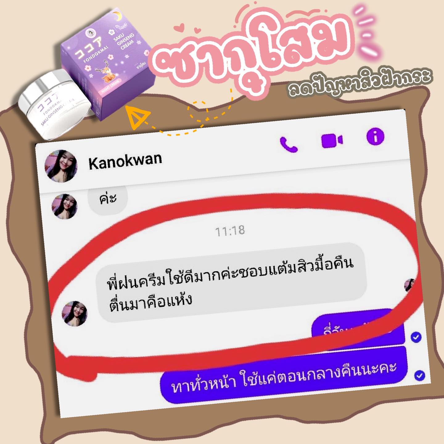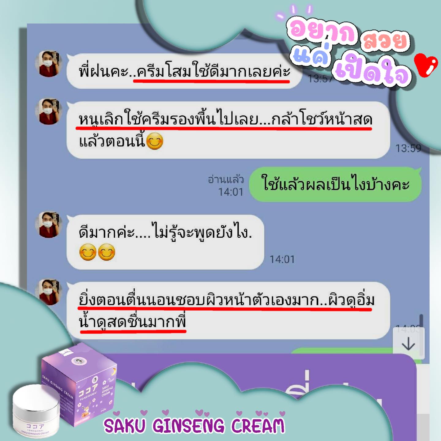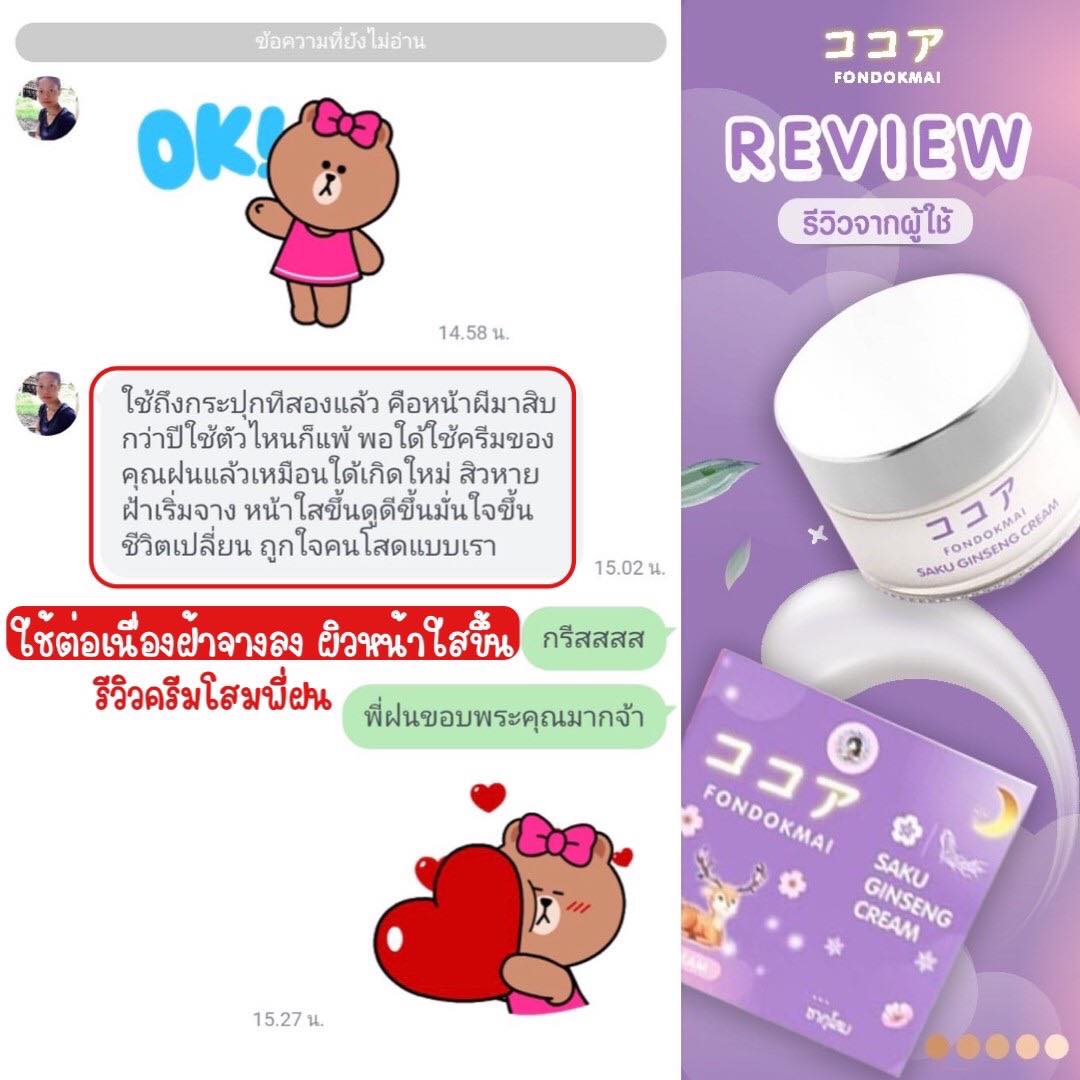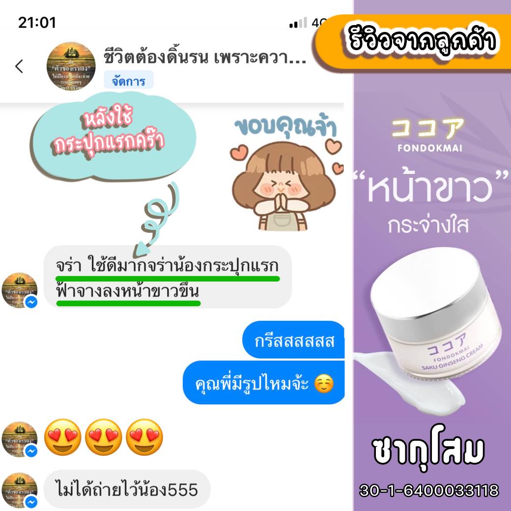 ตัวเองใช้แล้วเป็นยังไงบ้างจ้ะ หน้าดีขึ้นค่ะ ฟ้าจาง ลงค่ะ FONDOKMAI SAKU GINSENG CREAM |