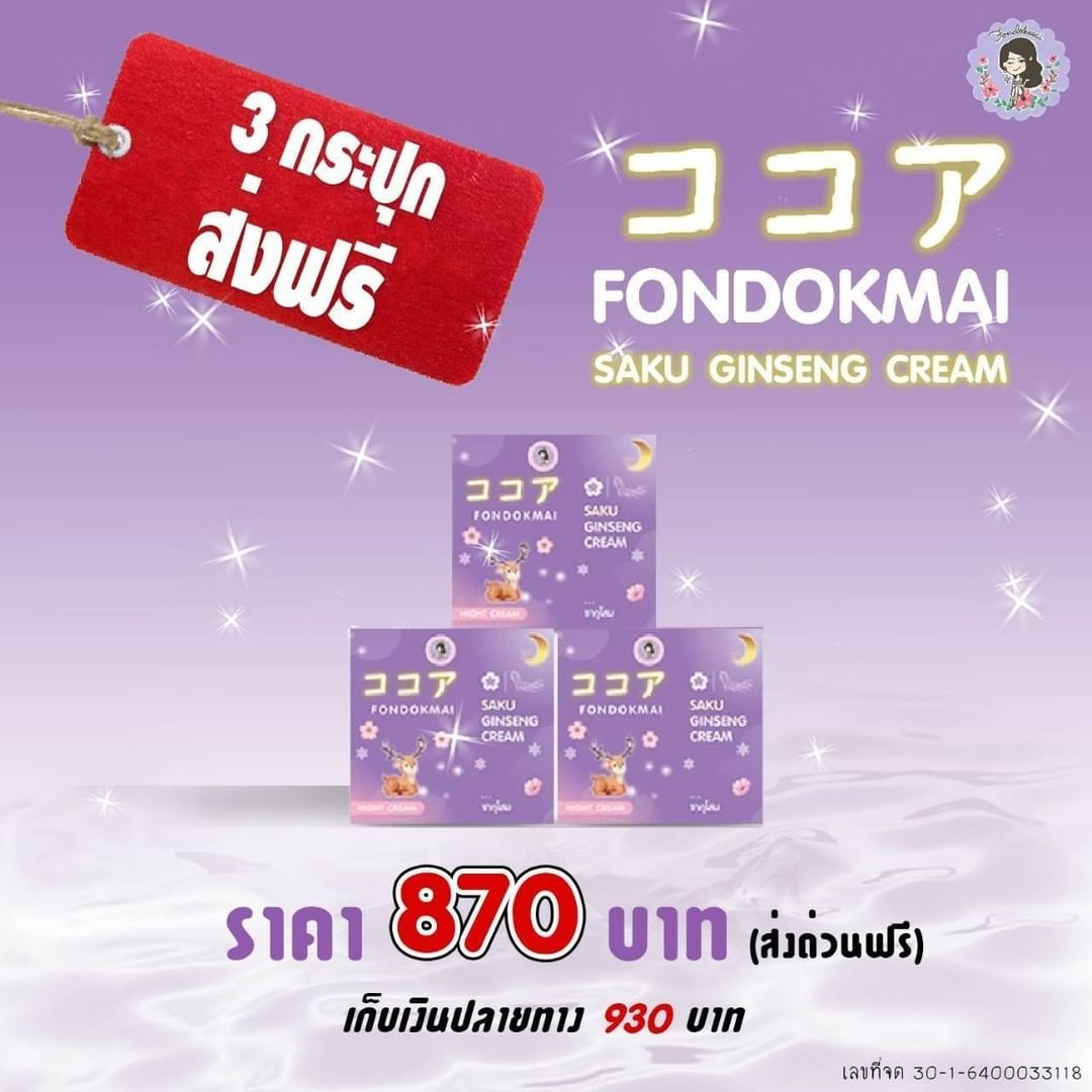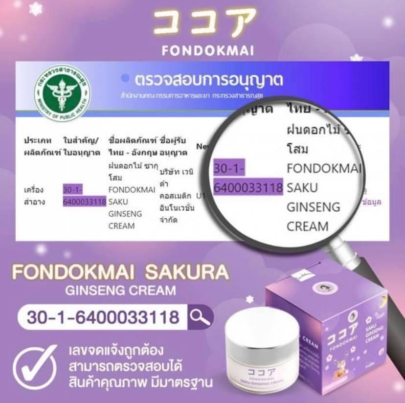 อย. 30-1-6400033118 ฝนดอกไม้ ซากุโสม FONDOKMAI SAKU GINSENG CREAM |