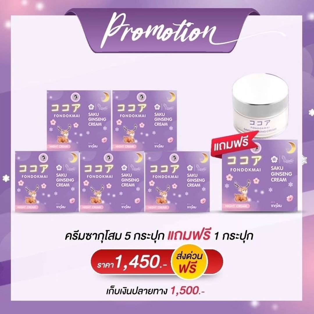 ครีมซากุโสม 5 กระปุก แถมฟรี 1 กระปุก ราคา 1,450. ( ส่งด่วนฟรี ) เก็บเงินปลายทาง 1,500.- |