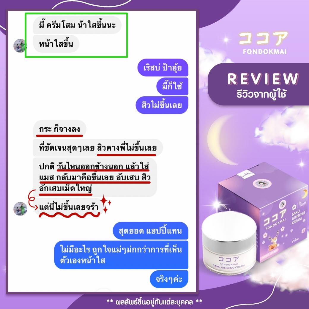 ใช้ดีจริงค่ะแค่2วันเองรู้สึกหนัสใสดีเนียนขึ้นอยุ่นะคะพี่ FONDOKMAI SAKU GINSENG CREAM |