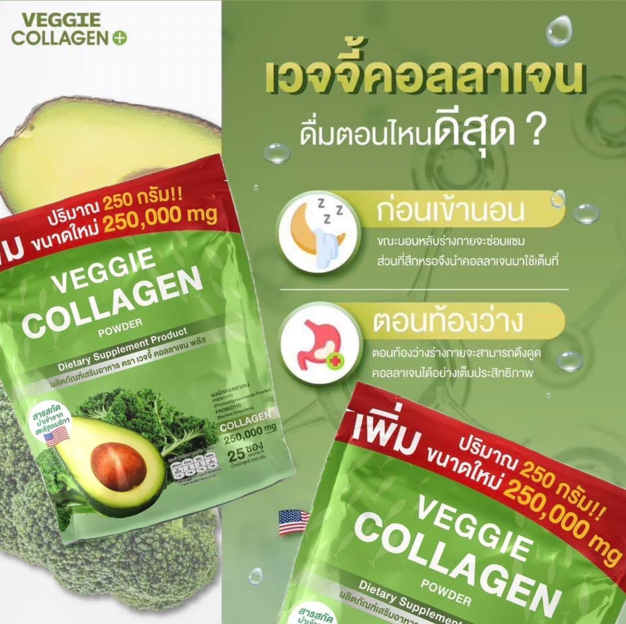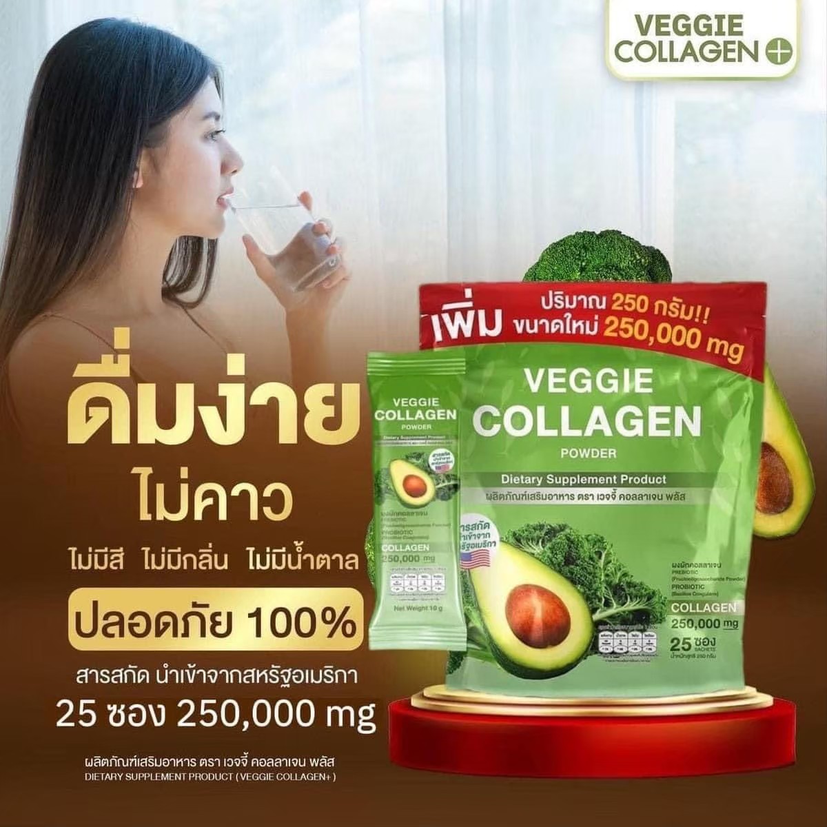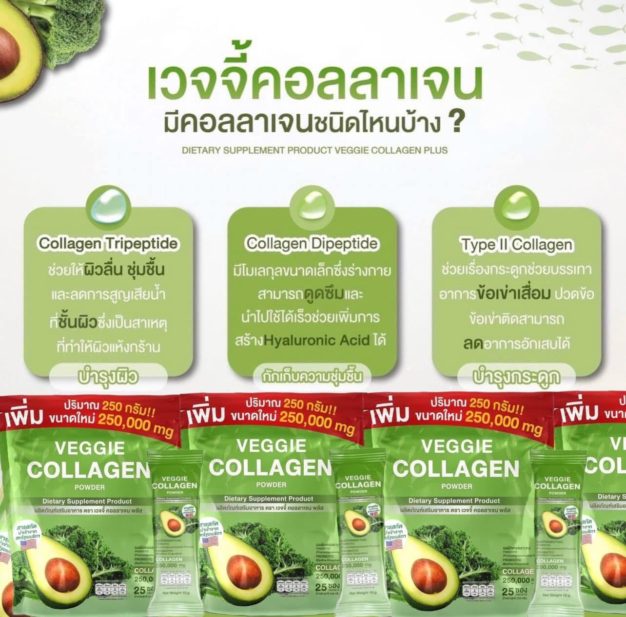 Veggie collagen คอลลาเจนผัก เวจจี้ คอลลาเจน บำรุงครบ ผิว เล็บ ผม กระดูก ดื่มง่าย ไม่คาว ปลอดภัย 100% คอลลาเจนเกรดพรีเมี่ยม ดูดซึมง่าย ไม่มีน้ำตาล ไม่อ้วน บำรุงผิว ปรับสมดุลการขับถ่าย สารสกัดนำเข้าจากสหรัฐอเมริกา |