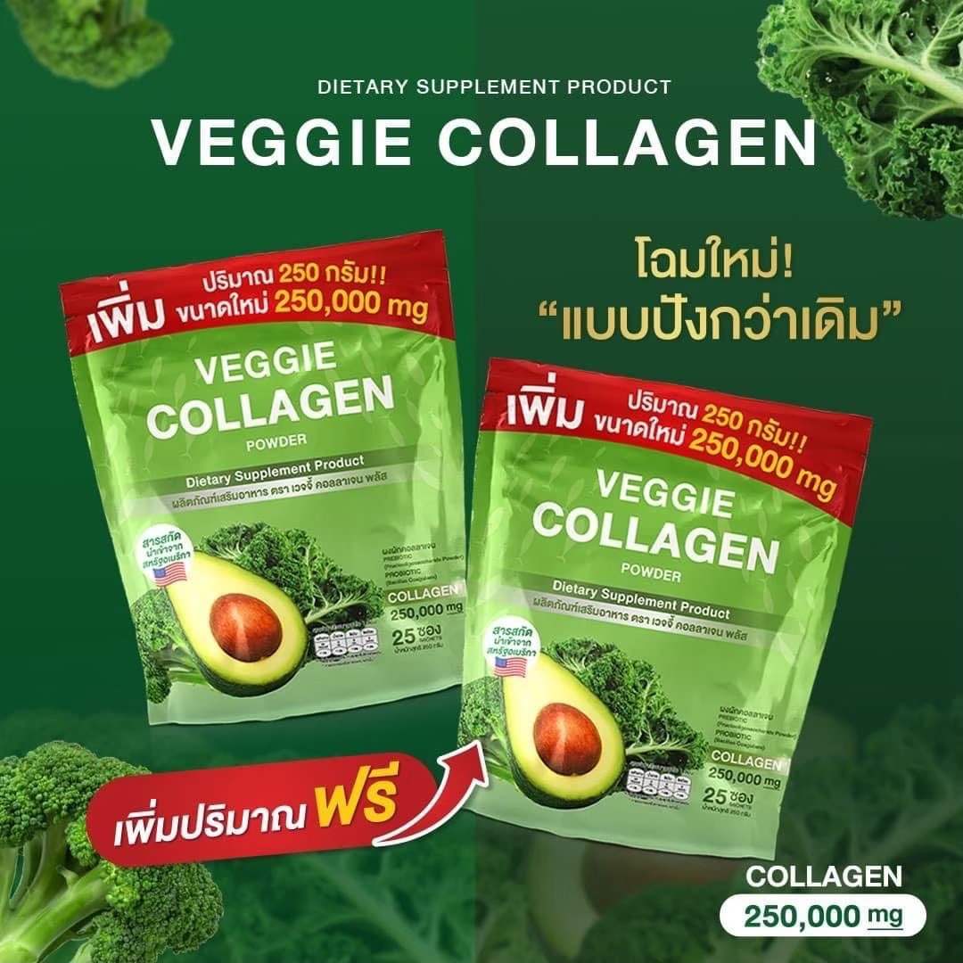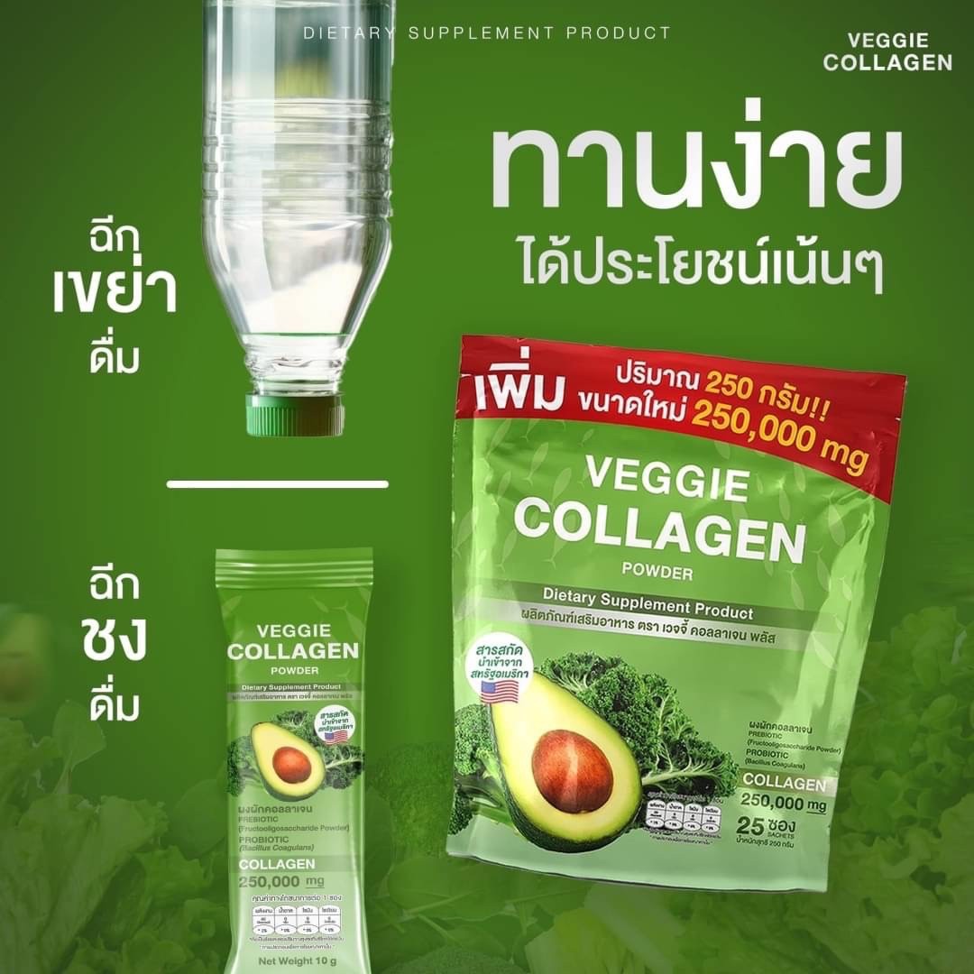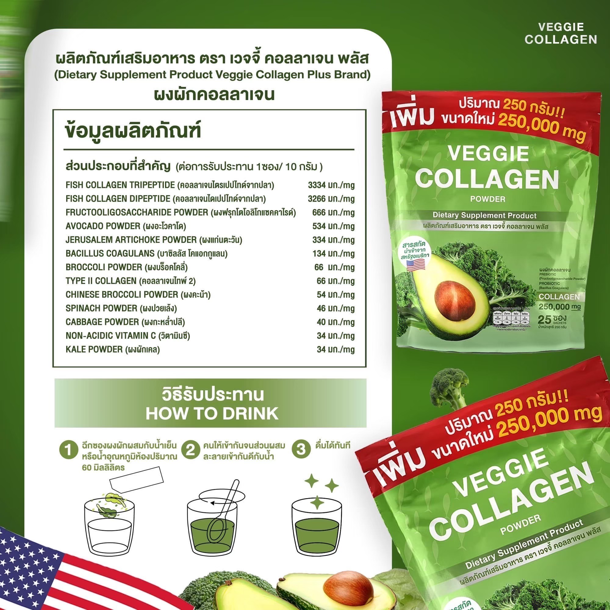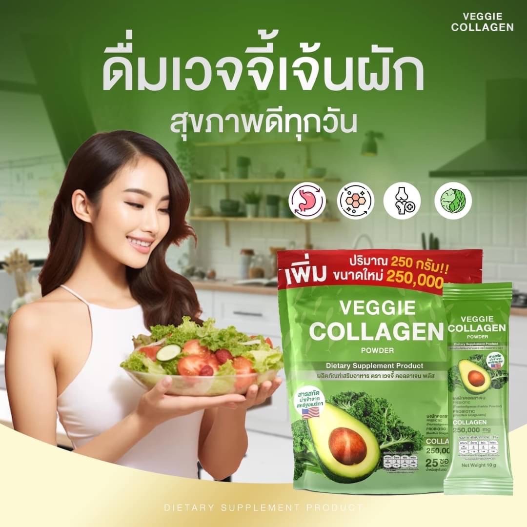 Veggie collagen คอลลาเจนผัก เวจจี้ คอลลาเจน บำรุงครบ ผิว เล็บ ผม กระดูก ดื่มง่าย ไม่คาว ปลอดภัย 100% คอลลาเจนเกรดพรีเมี่ยม ดูดซึมง่าย ไม่มีน้ำตาล ไม่อ้วน บำรุงผิว ปรับสมดุลการขับถ่าย สารสกัดนำเข้าจากสหรัฐอเมริกา |