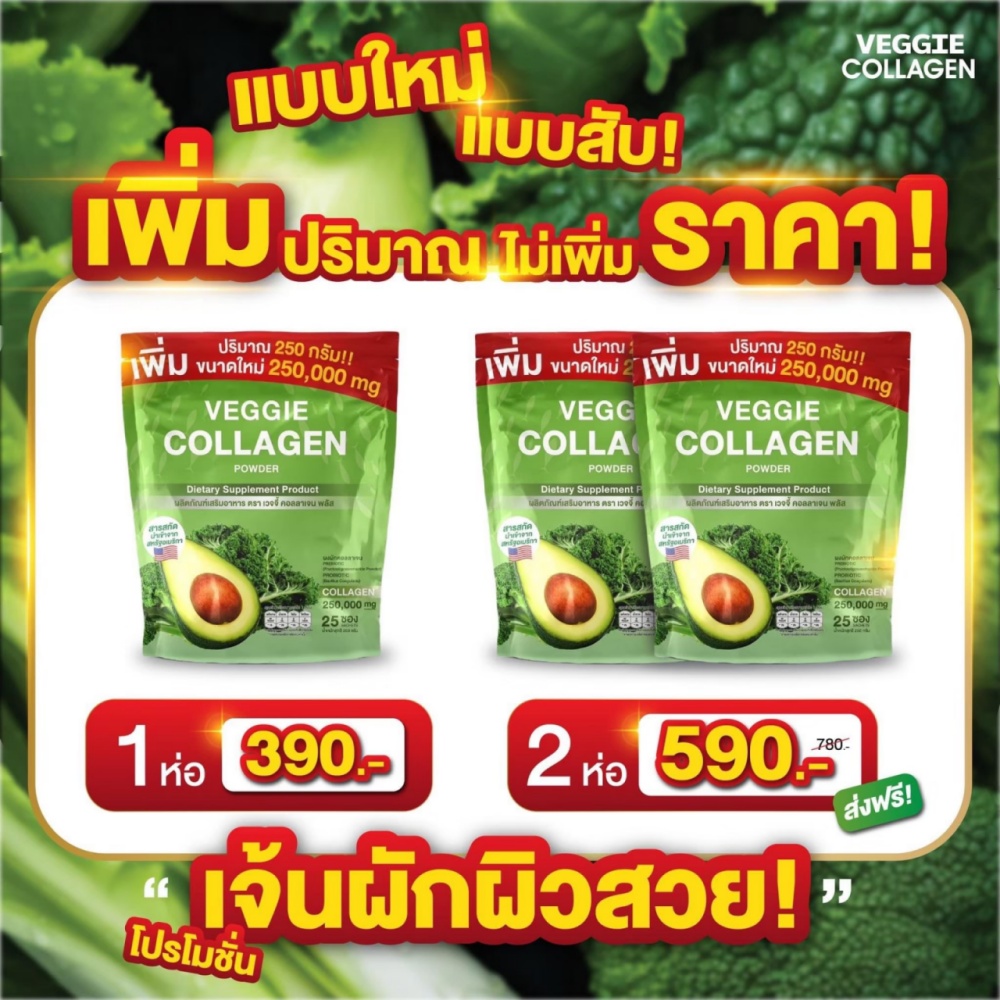 ราคาโปรโมชั่นคอลลาเจนผัก Veggie Collagen🟢 1 ห่อ ราคา 390 บาท 🟢 2 ห่อ ราคา 590 บาท 🟢 4 ห่อ ราคา 1,000 บาท จัดส่งฟรี มีบริการเก็บเงินปลายทาง |
