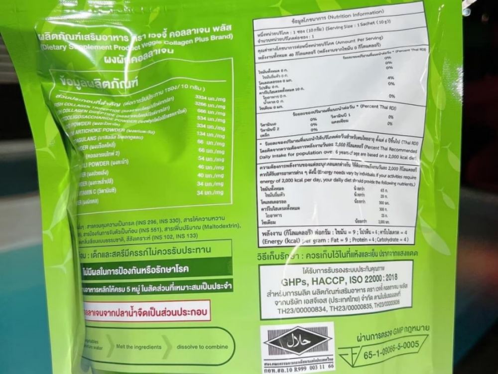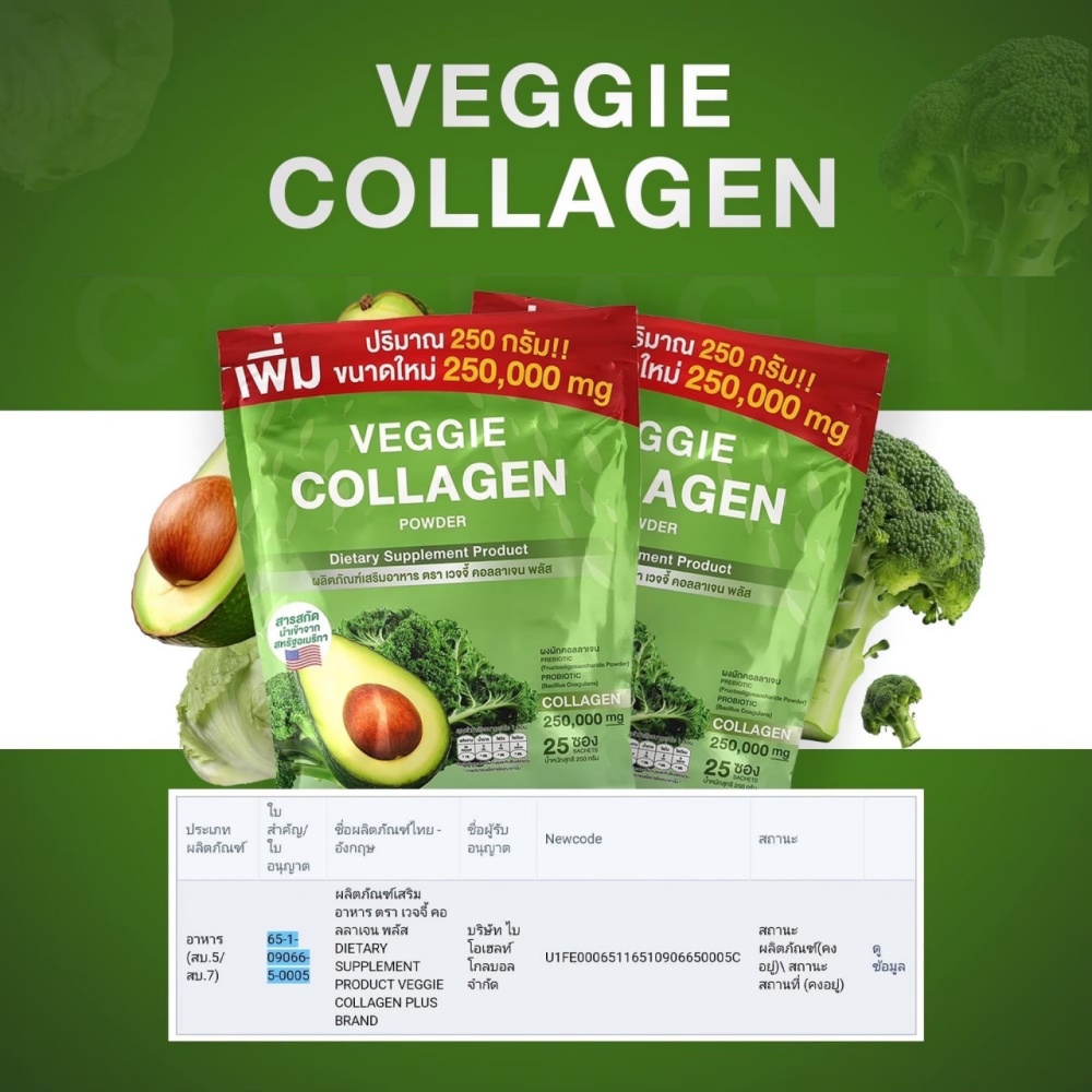 เลข อย. 65-1-09066-5-0005 ผลิตภัณฑ์เสริมอาหาร ตรา เวจจี้ คอลลาเจน พลัส Dietary Supplement Product VEGGIE COLLAGEN Plus Brand |