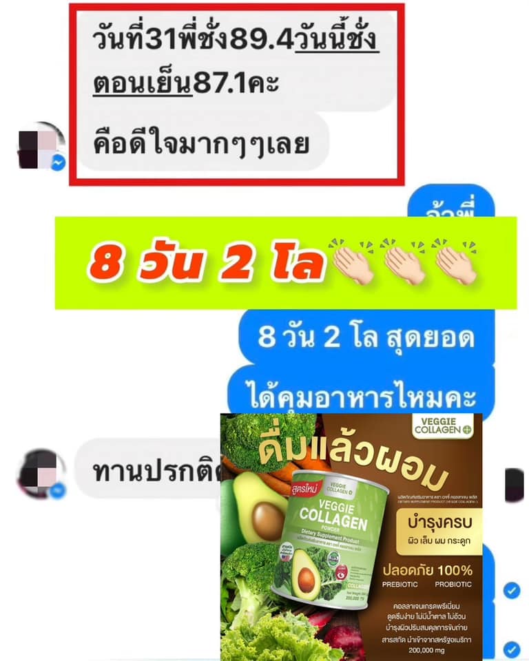 ทานเวจจี้ คอลลาเจนมา 2 กระปุกแล้วน้อง ทั้งผิว และสุขภาพดีขึ้น ปวดเข่าน้อยลง |