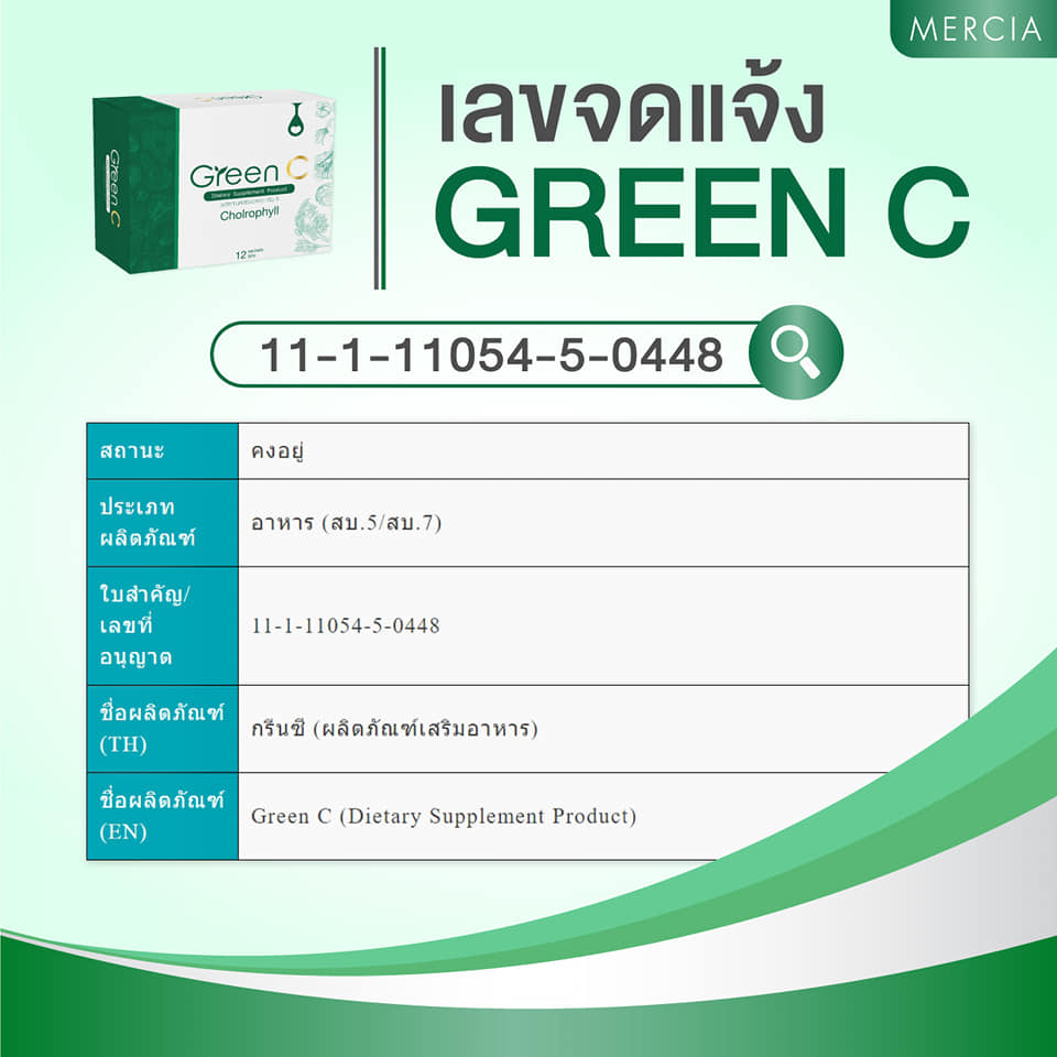 อย. 11-1-11054-5-0448 กรีนซี (ผลิตภัณฑ์เสริมอาหาร) Green C (Dietary Supplement Product)  |