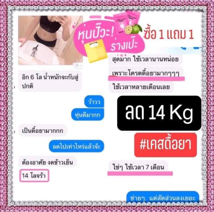 มารีวิวจ้า วันนี้มีคนทักบอกว่า ผอมลงมาก 1 แผง ลงไป 5-6 กิโลเลยจ้า จาก 67.8 ตอนนี้เหลืออยู่ 63 จ้า ไม่มีผลข้างเคียงเลยจ้า ไม่รู้สึกอยากอาหาร กินปกติ แต่กินน้อยลงจ้า  |