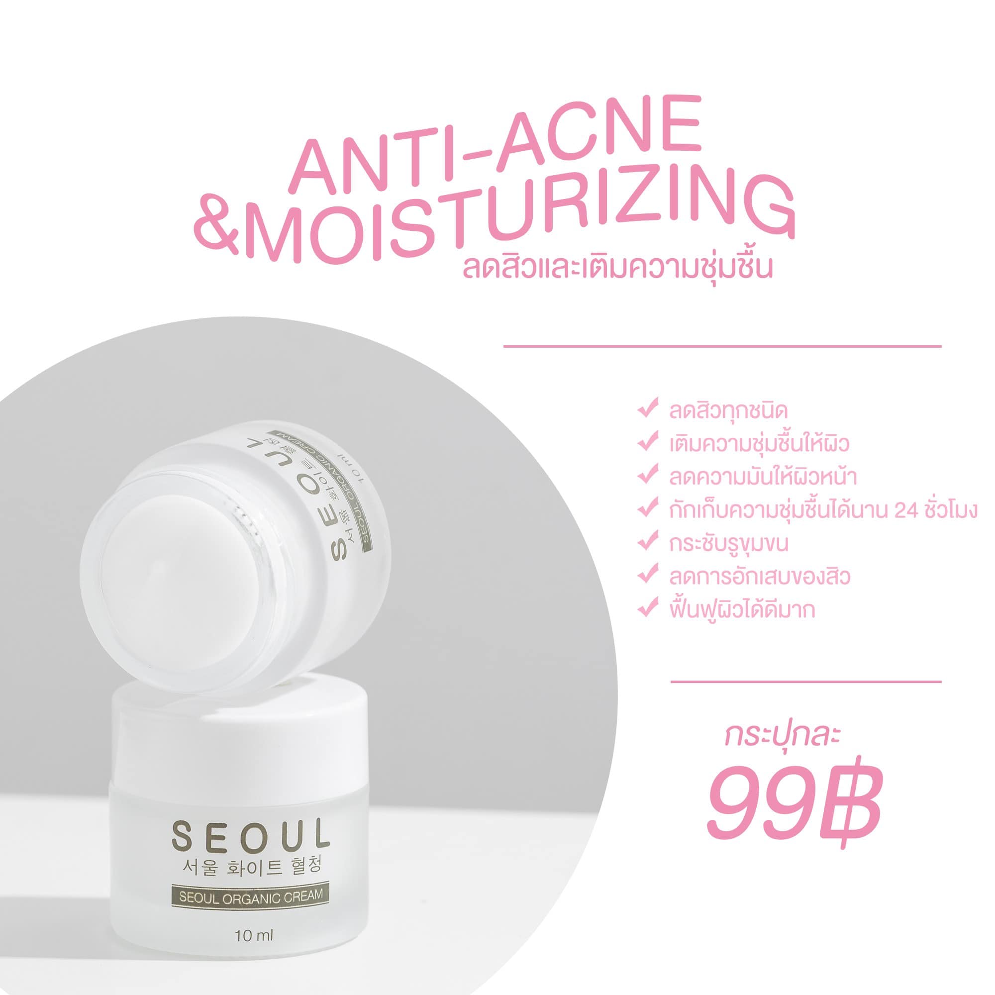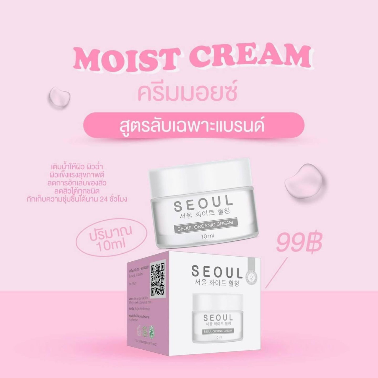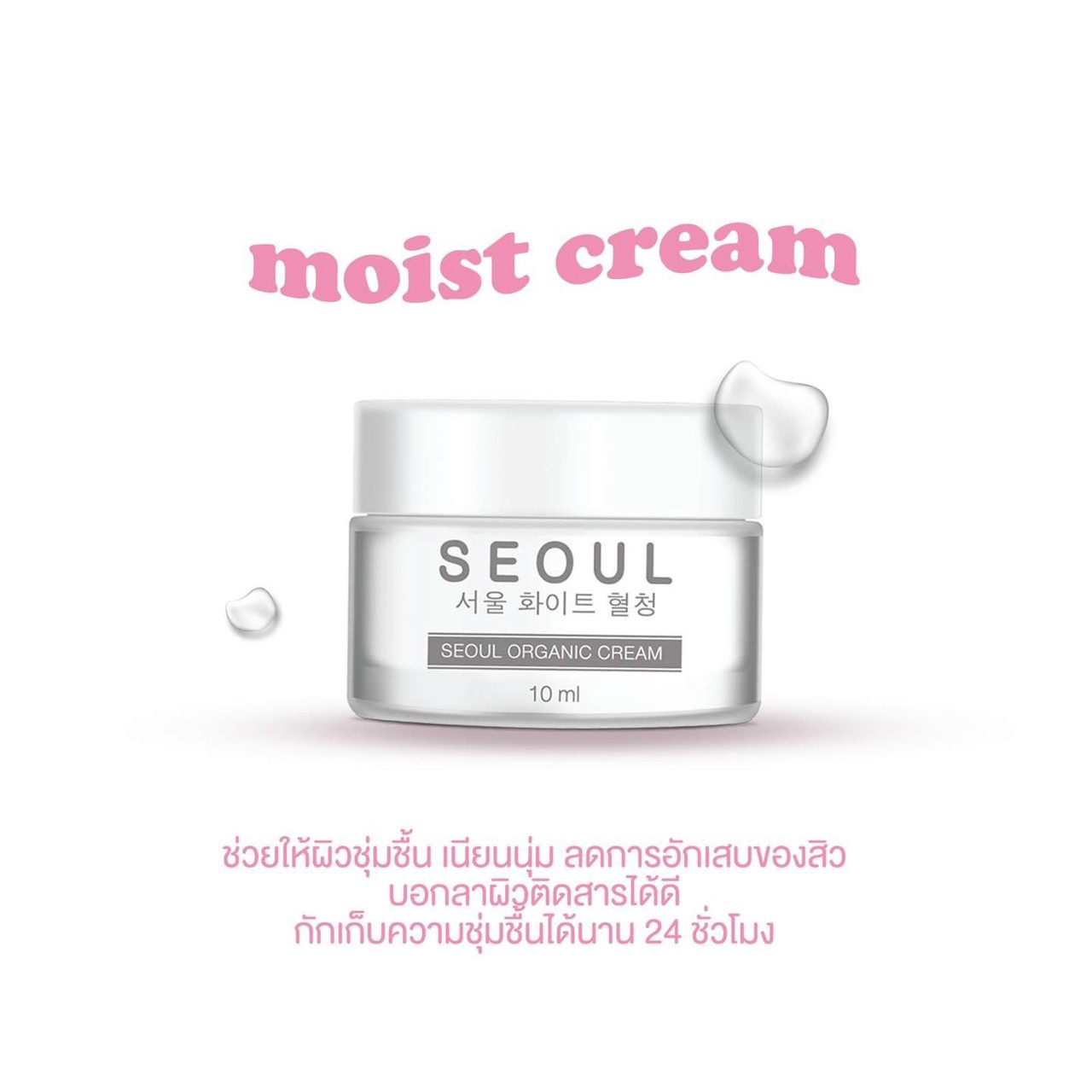 Moist Cream ครีมมอยซ์ 👍 ช่วยให้ผิวชุ่มชื้น เนียนนุ่ม ✨ ลดการอักเสบของสิว 👋 บอกลาผิวติดสารได้ดี 🕐 กักเก็บความชุ่มชื้นได้นาน 24 ชั่วโมง |