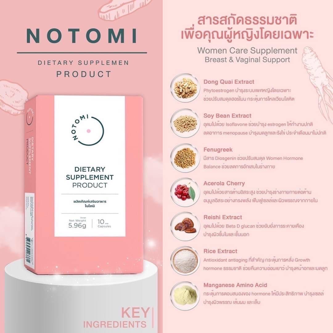 โนโตมิ NOTOMI ผลิตภัณฑ์เสริมอาหาร เพื่อคุณผู้หญิงโดยเฉพาะ วิตามินอัดแน่น เคล็ดลับสำหรับสุภาพสตรี 1 กล่อง บรรจุ 10 แคปซูล |