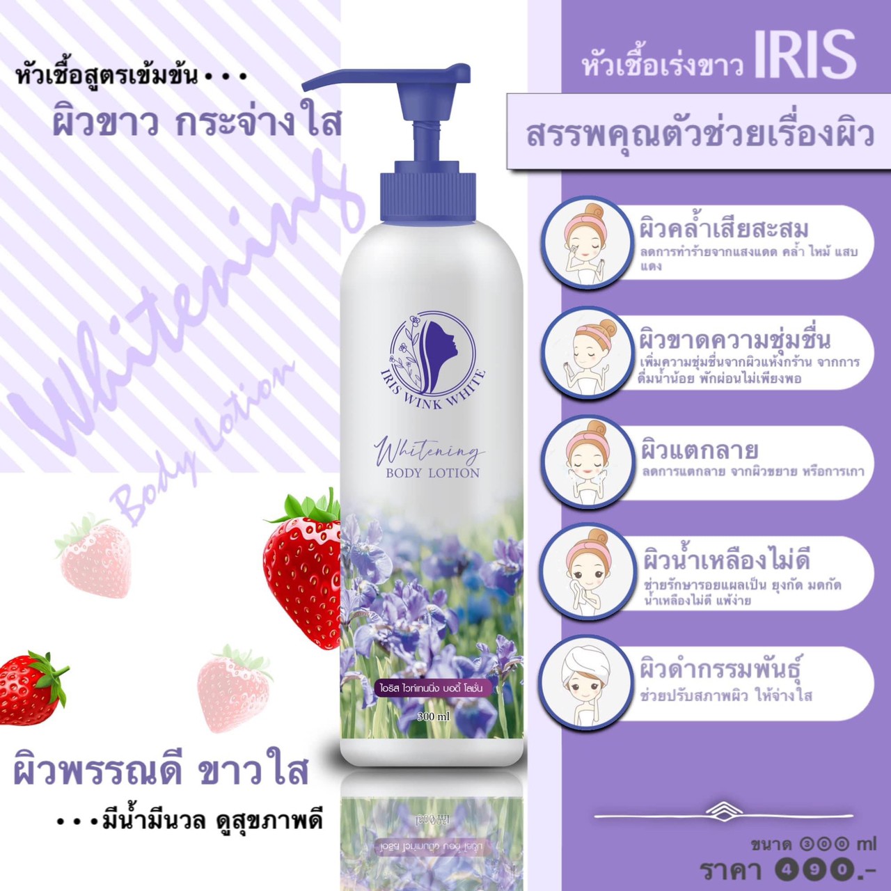 ไอริส ไวท์เทนนิ่ง IRIS WINK WHITE WHITENING BODY LOTION ช่วยปรับสภาพผิว เปลี่ยนผิวหมองคล้ำให้กระจ่างใส 1 ขวด ปริมาณ 300 มิลลิลิตร |