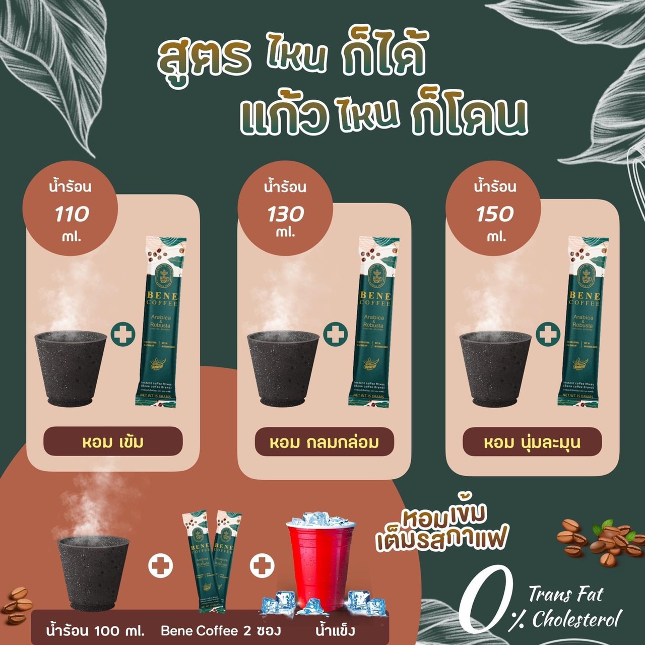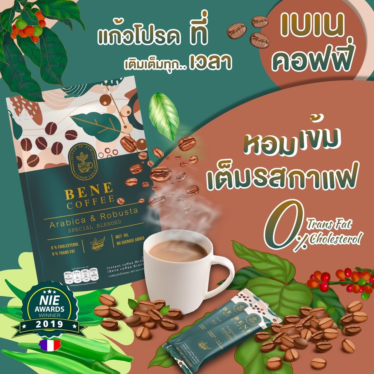 แก้วโปรด ที่เติมเต็มทุก...เวลา เบเน คอฟฟี่ BENE Coffee หอมเข้ม เต็มรสกาแฟ 0% Cholesterol Trans Fat |