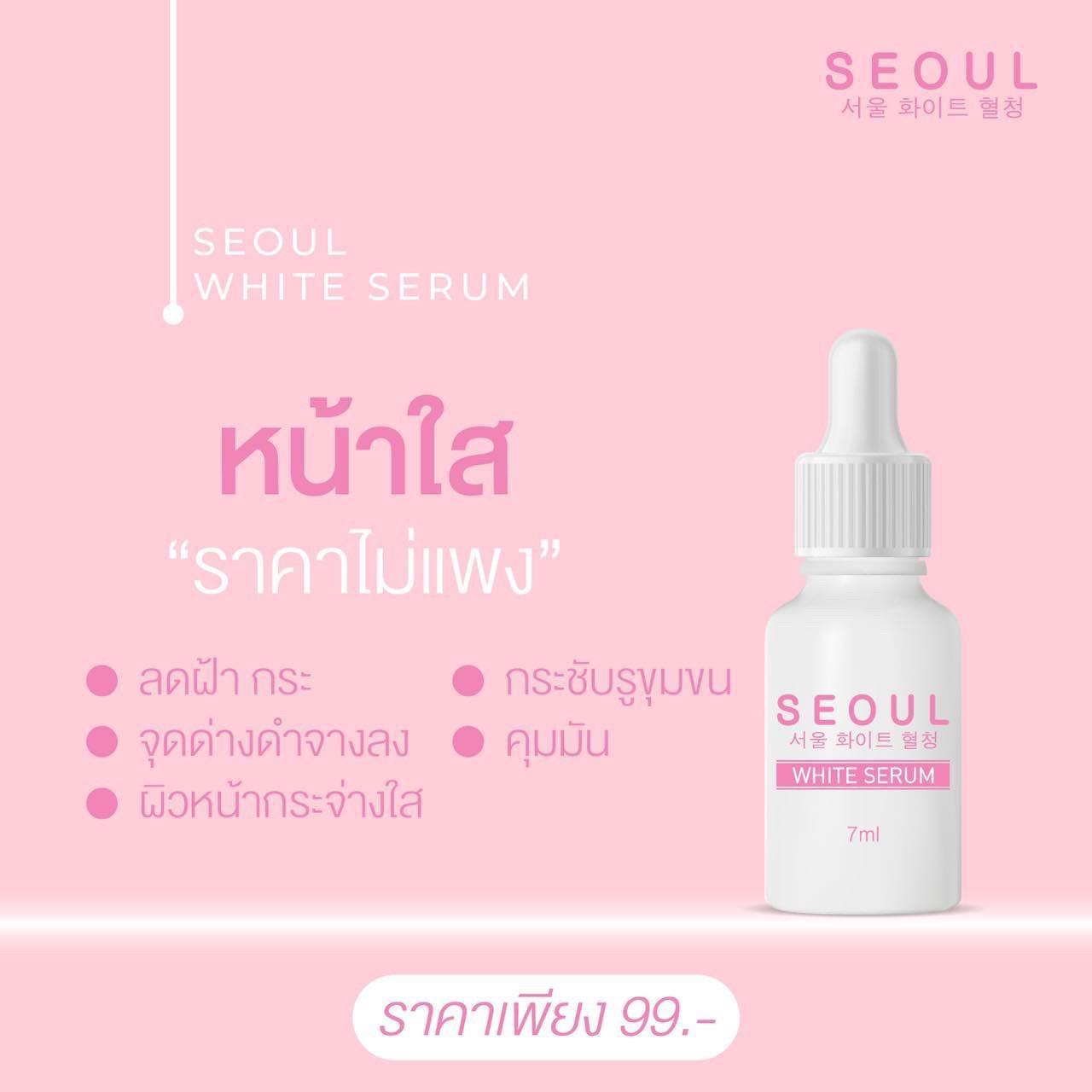 โซล ไวท์เซรั่ม Seoul White Serum หน้าใส ราคาไม่แพง 💫 ลดฝ้า กระ 💫 จุดด่างดำจางลง 💫 ผิวหน้ากระจ่างใส 💫 กระชับรูขุมขน 💫 คุมมัน |
