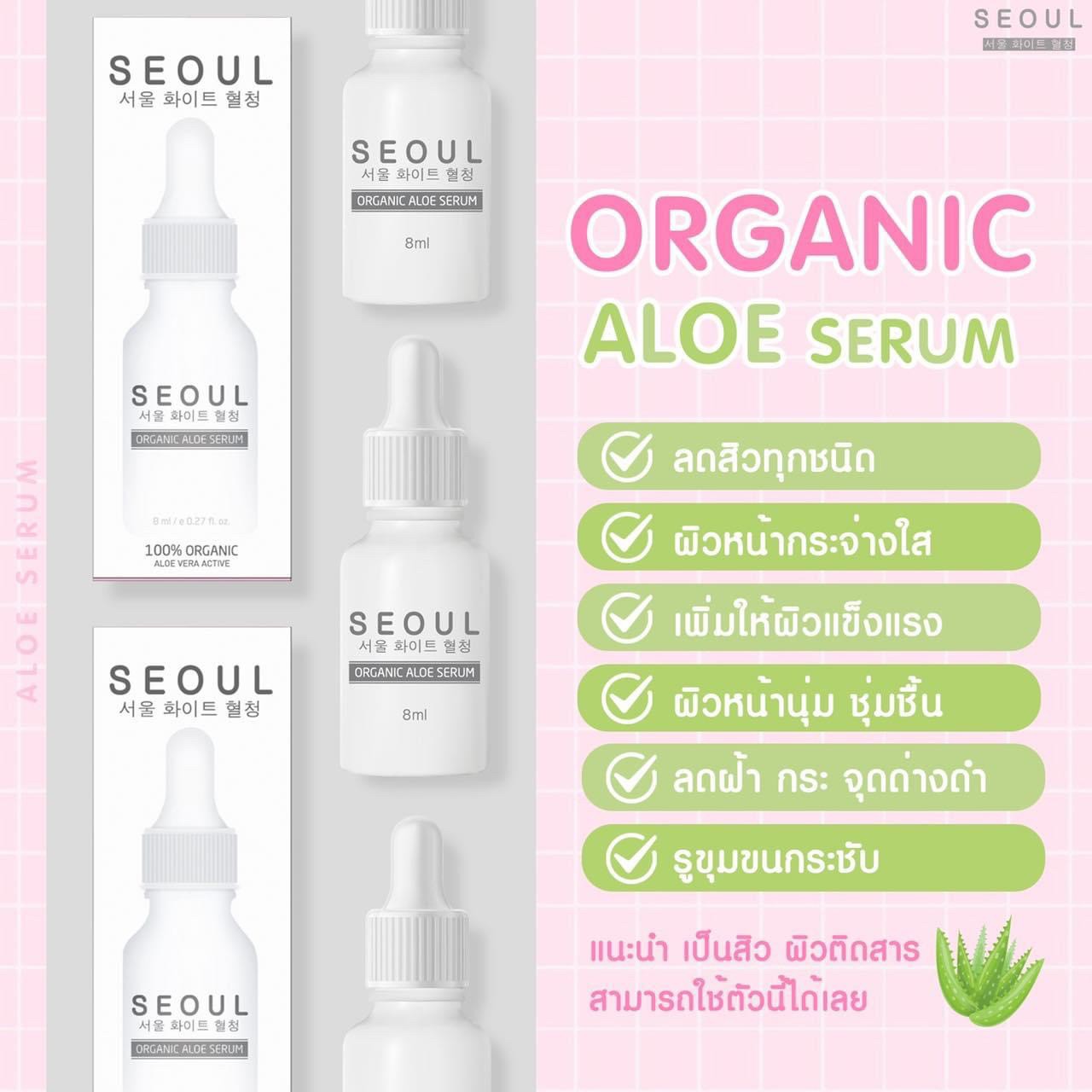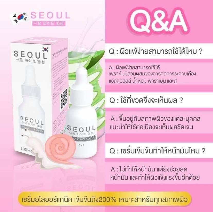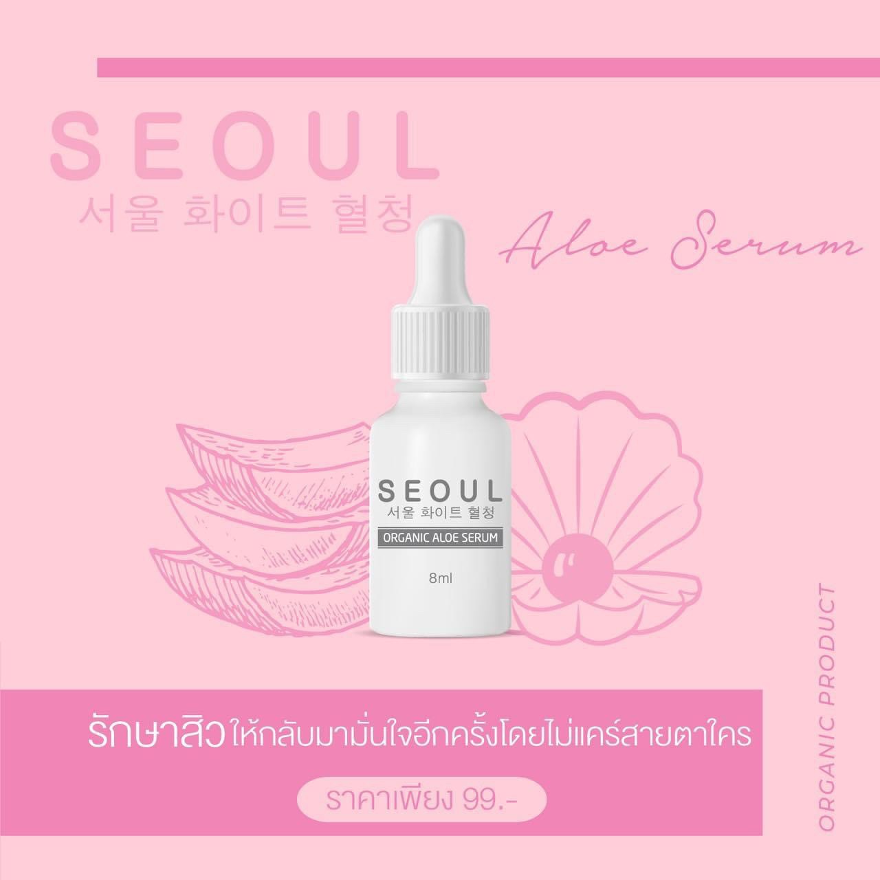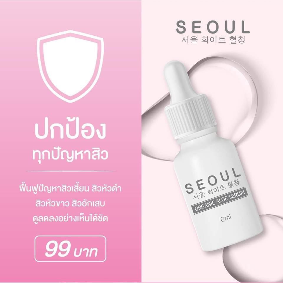 เซรั่มโซล อโล Seoul Aloe Serum รักษาสิวให้กลับมามั่นใจอีกครั้ง โดยไม่แคร์สายตาใคร 1 ขวด ปริมาณ 8 ml. |