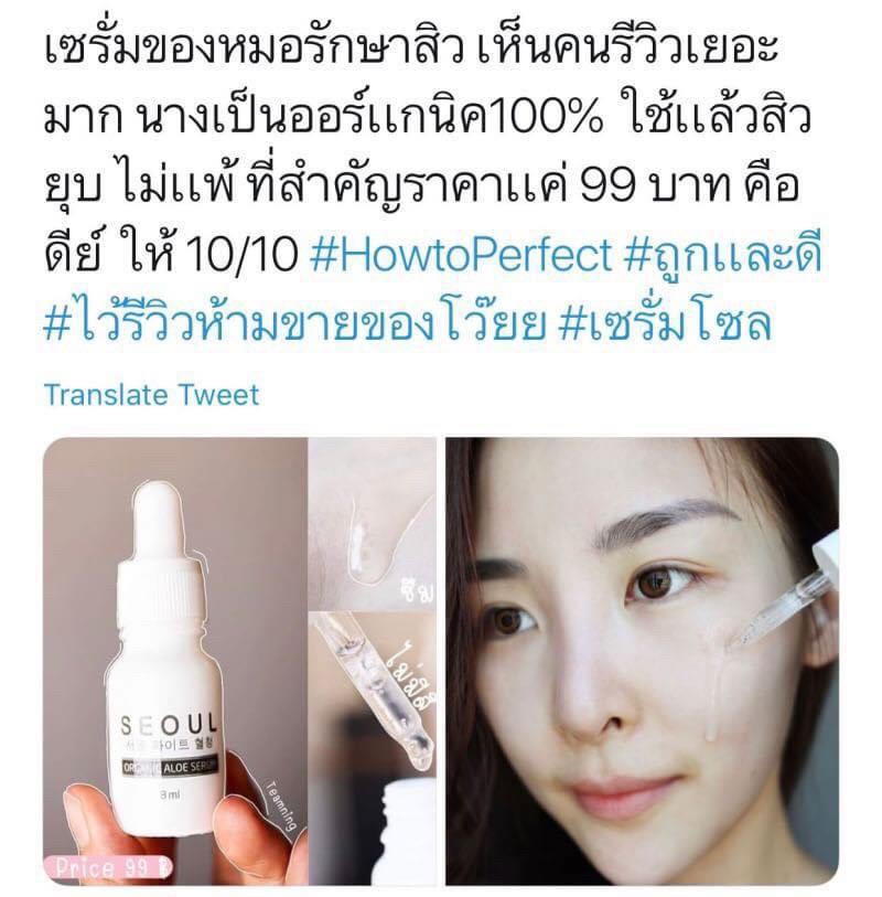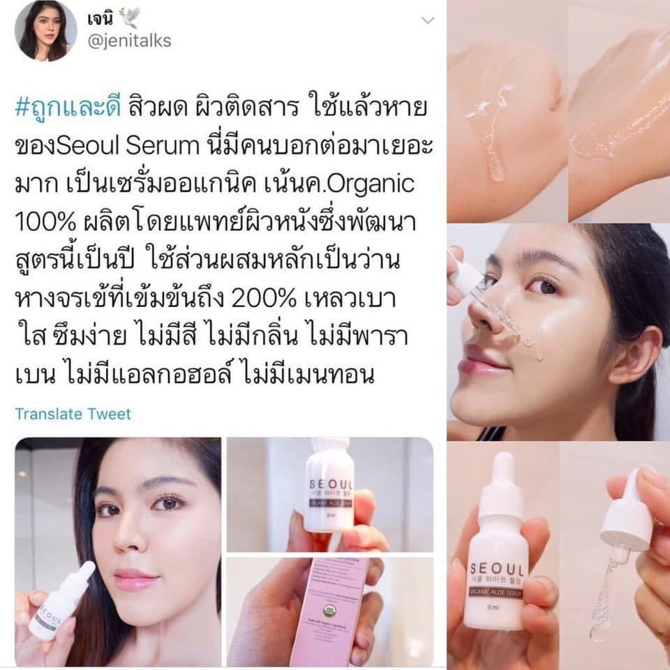 #ถูกและดี สิวผด ผิวติดสาร ใช้แล้วหายของ Seoul Serum นี่มีคนบอกต่อมาเยอะมาก เป็นเซรั่มออแกนิค เน้นความ Organic 100% ผลิตโดยแพทย์ผิวหนัง ซึ่งพัฒนาสูตรนี้เป็นปี ใช้ส่วนผสมหลักเป็นว่านหางจระเข้ ที่เข้มข้นถึง 200% เหลว เบา ใส ซึมง่าย ไม่มีสี ไม่มีกลิ่น ไม่มีพาราเบน ไม่มีแอลกอฮอล์ ไม่มีเมนทอน |