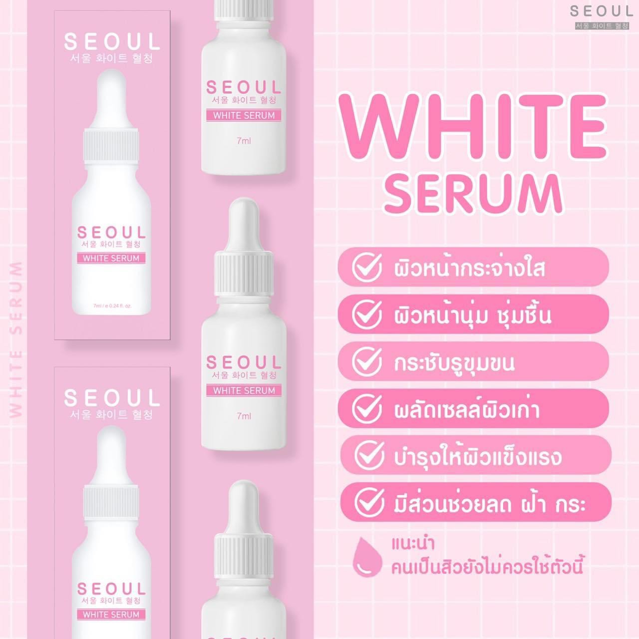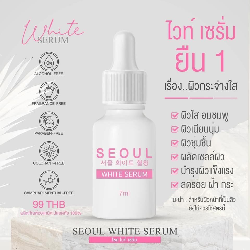 โซล ไวท์เซรั่ม Seoul White Serum เรื่องผิวกระจ่างใสยืน 1 ✅ ผิวใส อมชมพู ✅ ผิวเนียนนุ่ม ✅ ผิวชุ่มชื้น ✅ ผลัดเซลล์ผิว ✅ บำรุงผิวแข็งแรง ✅ ลดรอย ฝ้า กระ |