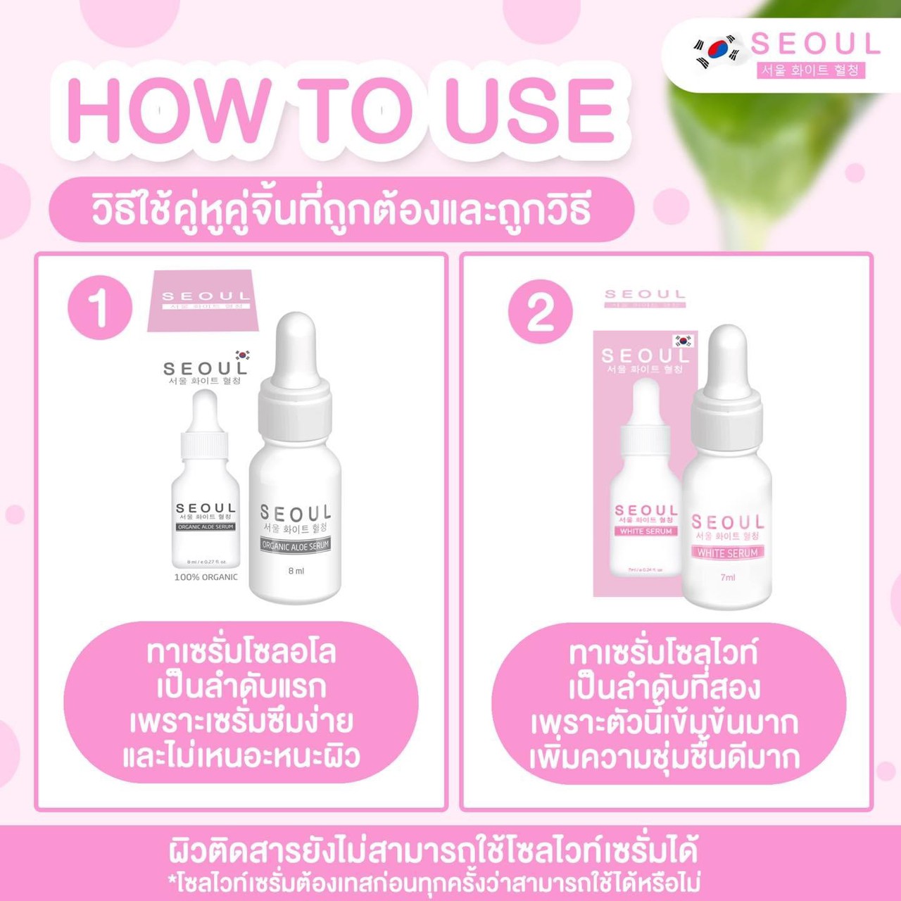 How To Use วิธีใช้คู่หูคู่จิ้นที่ถูกต้อง และถูกวิธี 1 ทาเซรั่มโซลอโลเป็นลำดับแรก เพราะเซรั่มซึมง่าย และไม่เหนอะหนะผิว 2 ทาเซรั่มโซลไวท์ เป็นลำดับที่สอง เพราะตัวนี้เข้มข้นมาก เพิ่มความชุ่มชื้นดีมาก ** ผิวติดสารยังไม่สามารถใช้โซลไวท์เซรั่มได้ โซลไวท์เซรั่มต้องเทสก่อนทุกครั้ง ว่าสามารถใช้ได้หรือไม่ |