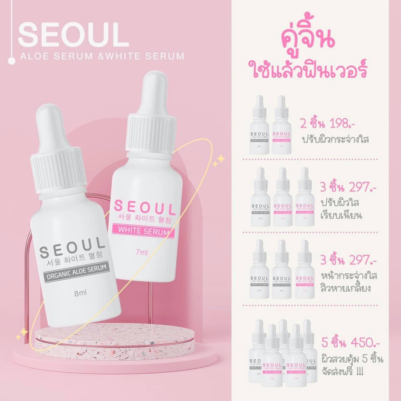 ราคาและโปรโมชั่น โซล เซรั่ม Seoul Serum ขนาดทดลอง 1 ขวด ราคา 99 บาท 2 ขวด ราคา 198 บาท 3 ขวด ราคา 297 บาท 5 ขวด ราคา 450 บาท มีบริการเก็บเงินปลายทาง |