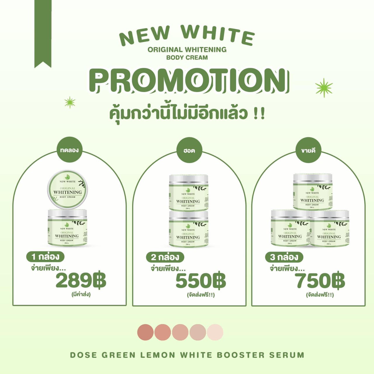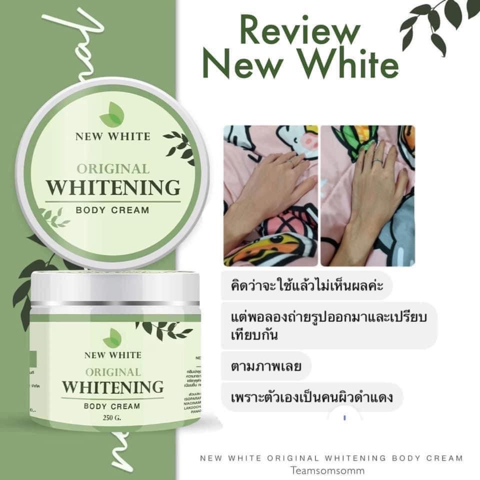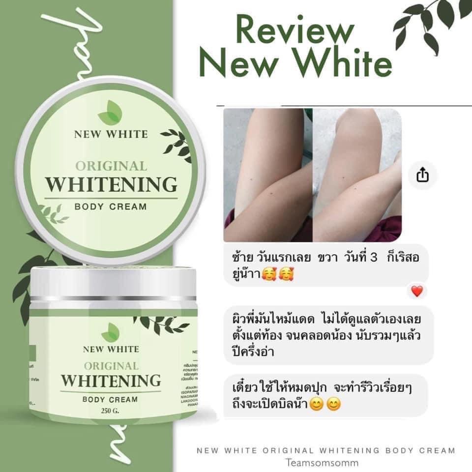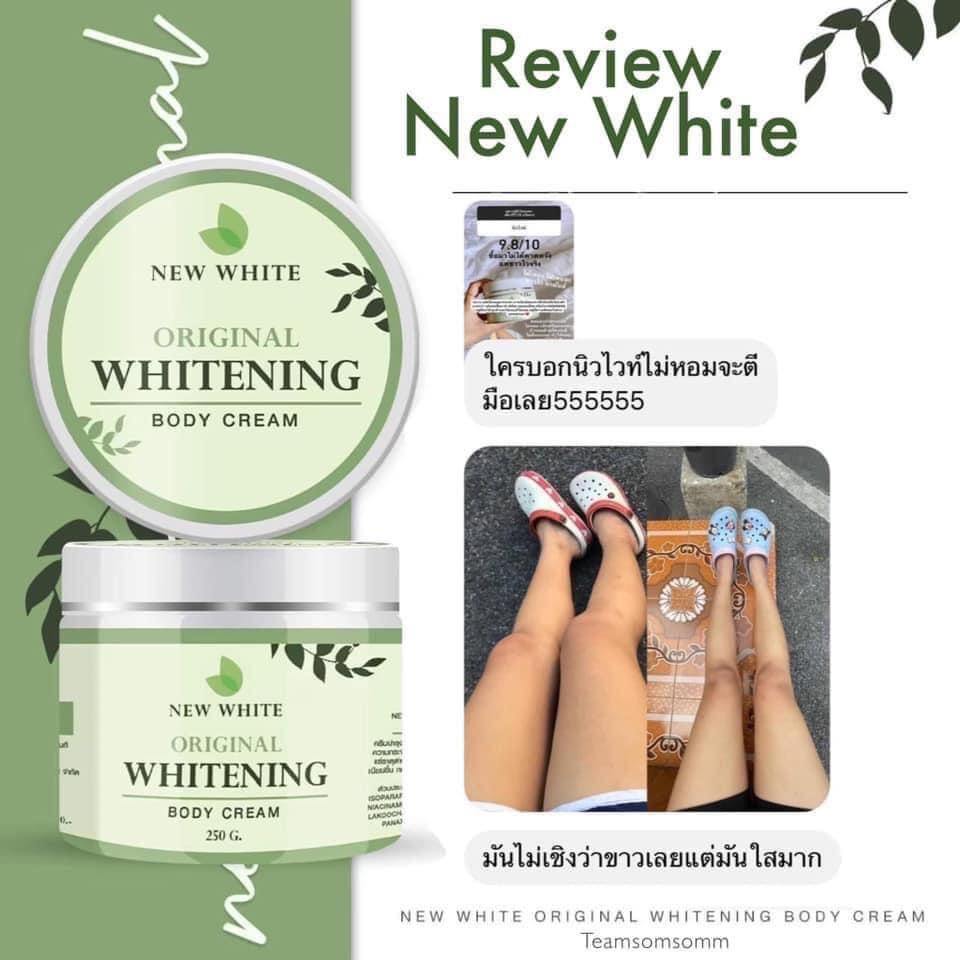 นิวไวท์ โลชั่นผิวขาว New white original whitening body cream มีส่วนช่วยในเรื่อง บำรุงผิวกาย ลดรอยดำ รอยแดง ปรับผิวขาวกระจ่างใส ช่วยให้ผิวชุ่มชื้น ไม่แห้ง และฟื้นฟูผิวคล้ำเสีย |