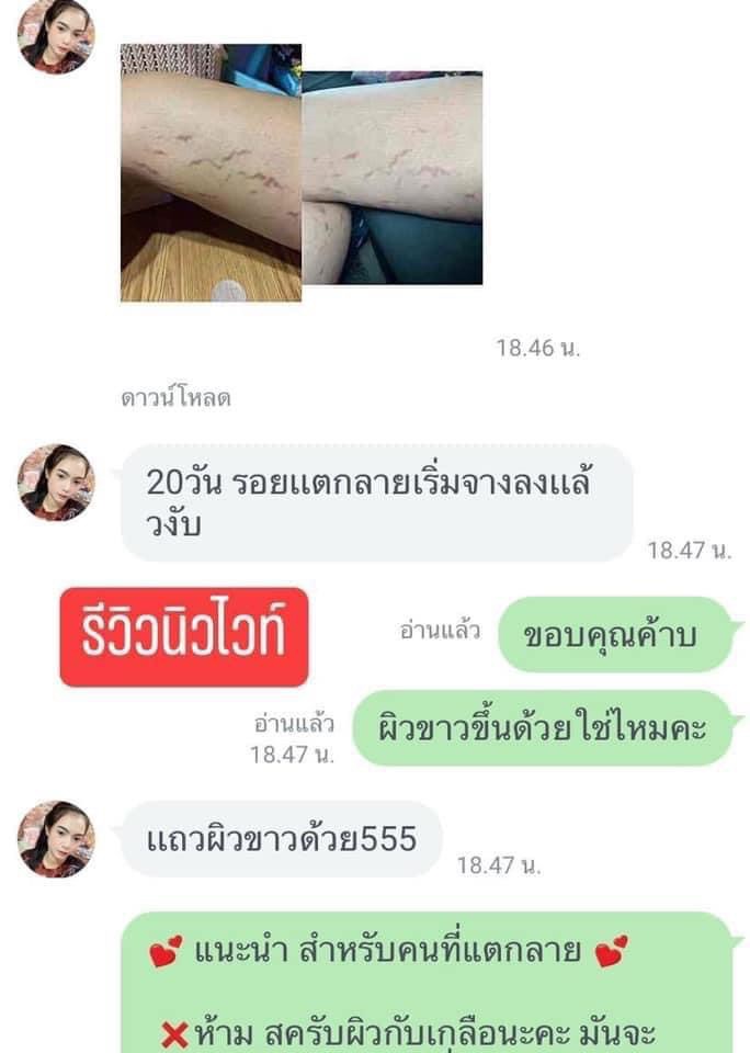 20 วัน รอยแตกลายเริ่มจางลงแล้วงับ แถมผิวขาวด้วย 5555 |