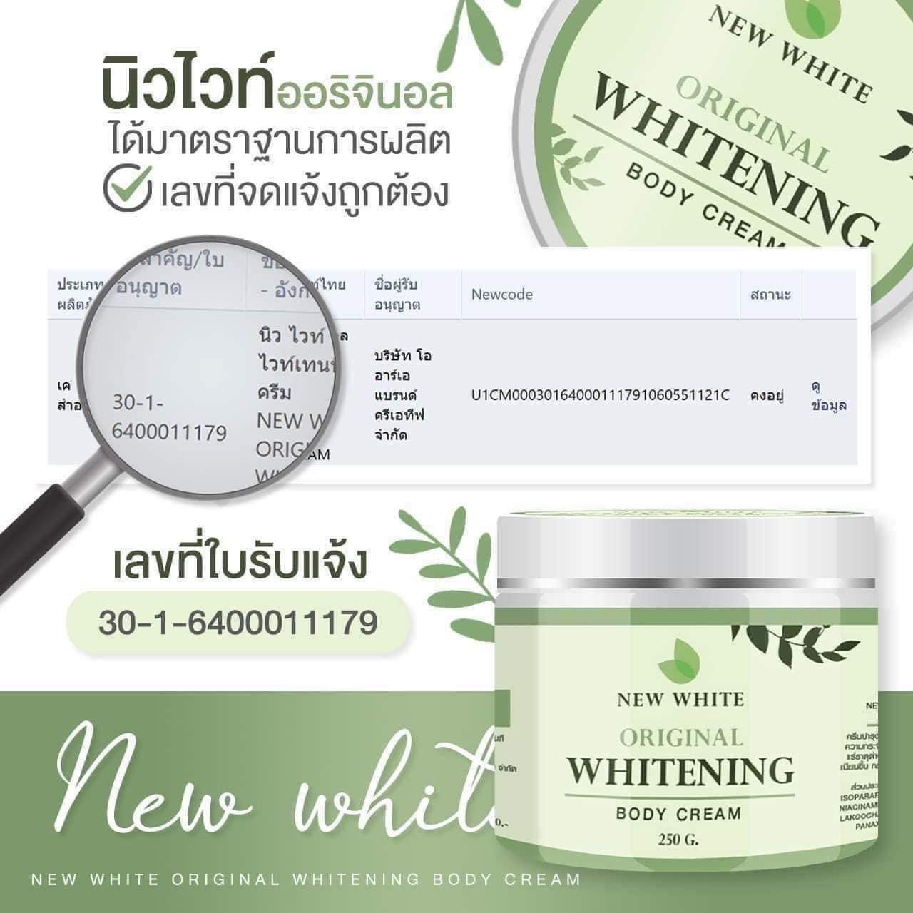 เลขที่จดแจ้ง 30-1-6400011179 นิว ไวท์ ออริจินอล ไวท์เทนนิ่ง บอดี้ ครีม NEW WHITE ORIGINAL WHITENING BODY CREAM |