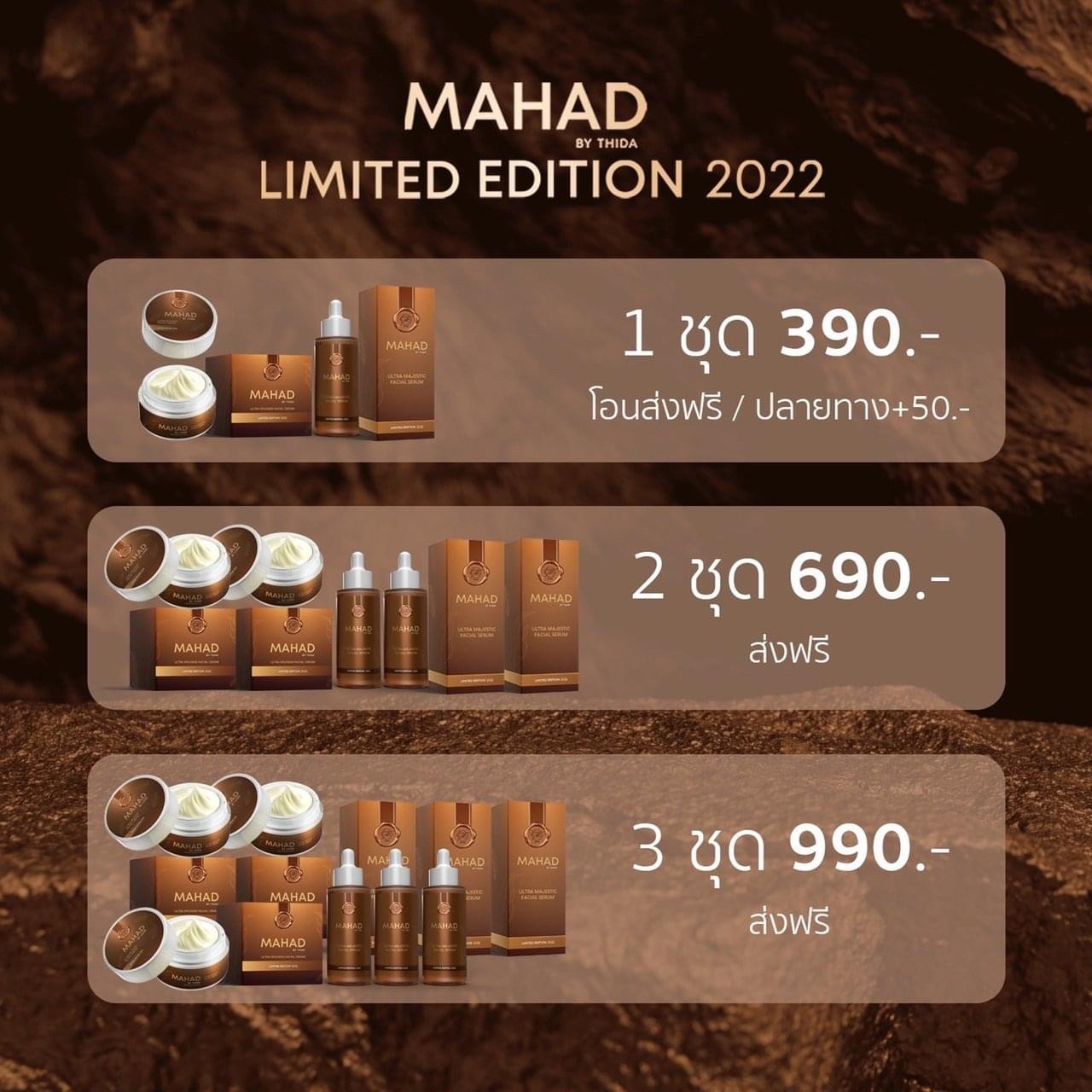 ราคาและโปรโมชั่น มะหาด บาย ธิดา ลิมิเต็ด เอดิชั่น 2022 อัลตรา มาเจสทิก เฟเชียล เซรั่ม MAHAD BY THIDA LIMITED EDITION 2022 ULTRA MAJESTIC FACIAL SERUM & มะหาด บาย ธิดา ลิมิเต็ด เอดิชั่น 2022 อัลตรา สเพลนดิด เฟเชียล ครีม MAHAD BY THIDA LIMITED EDITION 2022 ULTRA SPLENDID FACIAL CREAM 1 ชุด ราคา 390 บาท โอนส่งฟรี/ปลายทาง + 50 บาท 2 ชุด ราคา 690 บาท 3 ชุด ราคา 990 บาท 2 ชุดขึ้นไป ส่งฟรี มีบริการเก็บเงินปลายทาง |