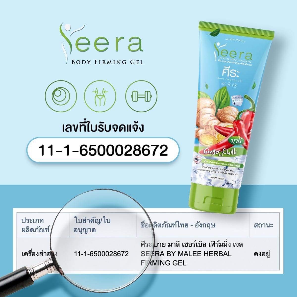 เลขที่จดแจ้ง 11-1-6500028672 ศีระ บาย มาลี เฮอร์เบิล เฟิร์มมิ่ง เจล SEERA BY MALEE HERBAL FIRMING GEL |