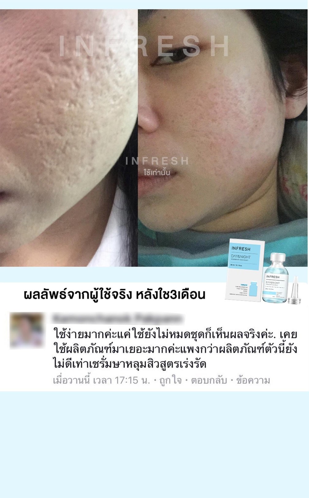 ใช้มาครบเดือนหนึ่งแล้วค่ะ หลุมตื้นขึ้นมาก ดีใจค่ะ |