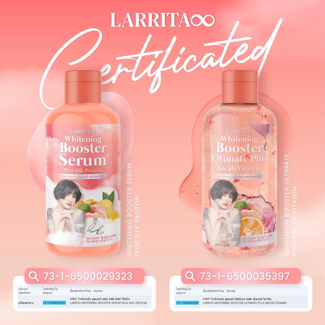 เลขที่จดแจ้ง 73-1-6500029323 ราริต้า ไวท์เทนนิ่ง บูสเตอร์ เซรั่ม พลัส ซิลค์ โปรตีน LARRITA WHITENING BOOSTER SERUM PLUS SILK PROTEIN