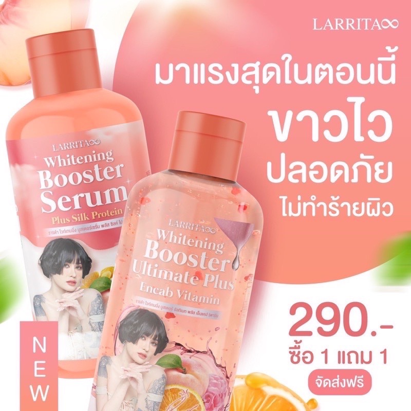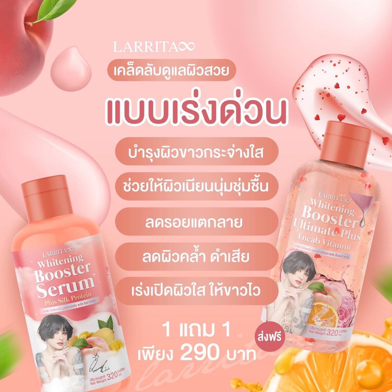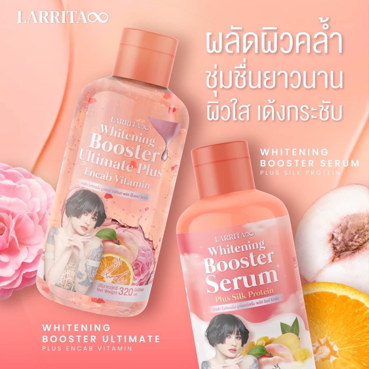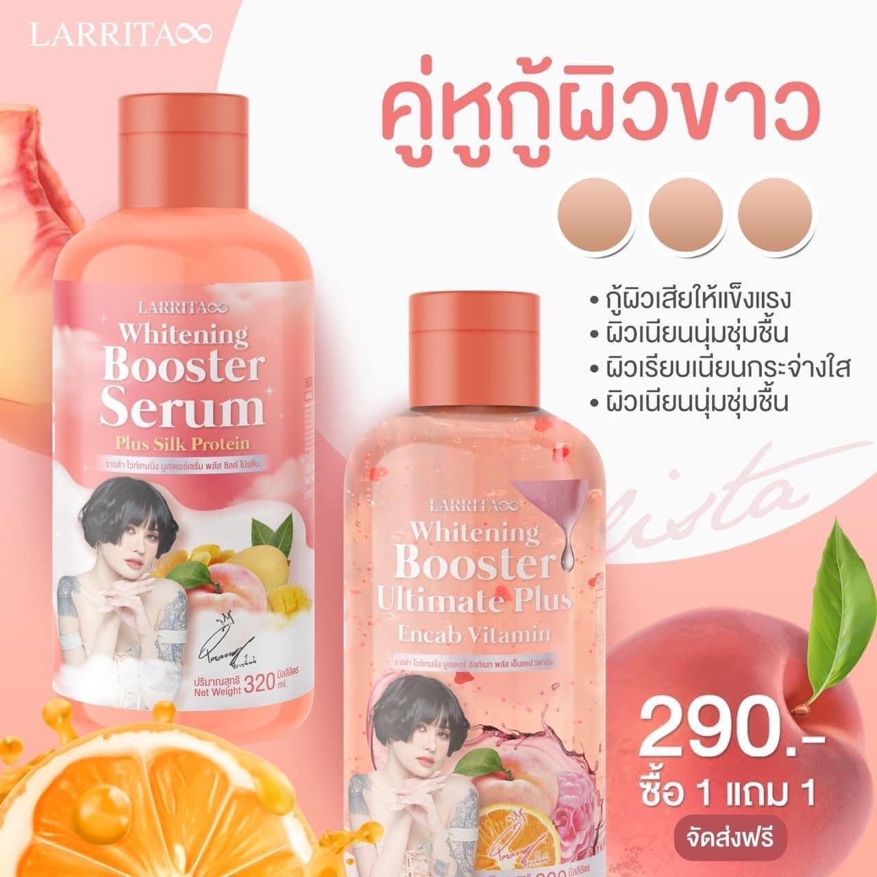 โลชั่นบูทเตอร์ เซรั่มปรางทิพย์ WHITENING BOOSTER SERUM & ราริต้า ไวท์เทนนิ่ง บูสเตอร์ อัลทิเมท พลัส เอ็นแคป วิตามิน LARRITA WHITENING BOOSTER ULTIMATE PLUS ENCAB VITAMIN คู่หู กู้ผิวขาว ✨ กู้ผิวเสียให้แข็งเรง ✨ ผิวเนียนนุ่ม ชุ่มชื้น ✨ ผิวเรียบเนียน กระจ่างใส |