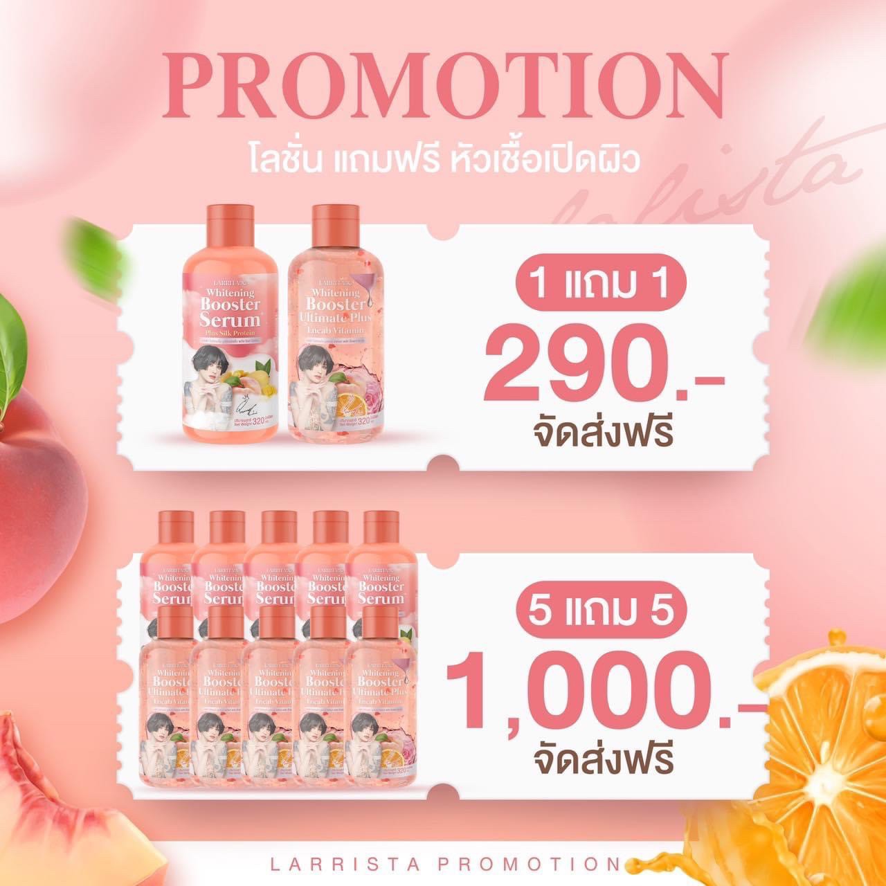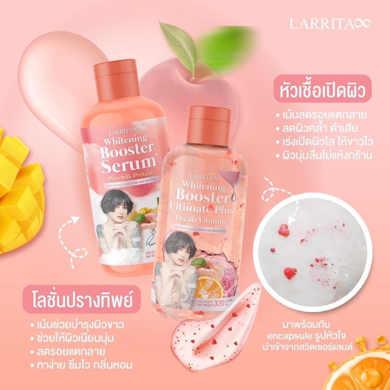 โลชั่นบูทเตอร์ เซรั่มปรางทิพย์ WHITENING BOOSTER SERUM & ราริต้า ไวท์เทนนิ่ง บูสเตอร์ อัลทิเมท พลัส เอ็นแคป วิตามิน LARRITA WHITENING BOOSTER ULTIMATE PLUS ENCAB VITAMIN ผลัดผิวคล้ำ ชุ่มชื่นยาวนาน ผิวใส เด้งกระชับ |