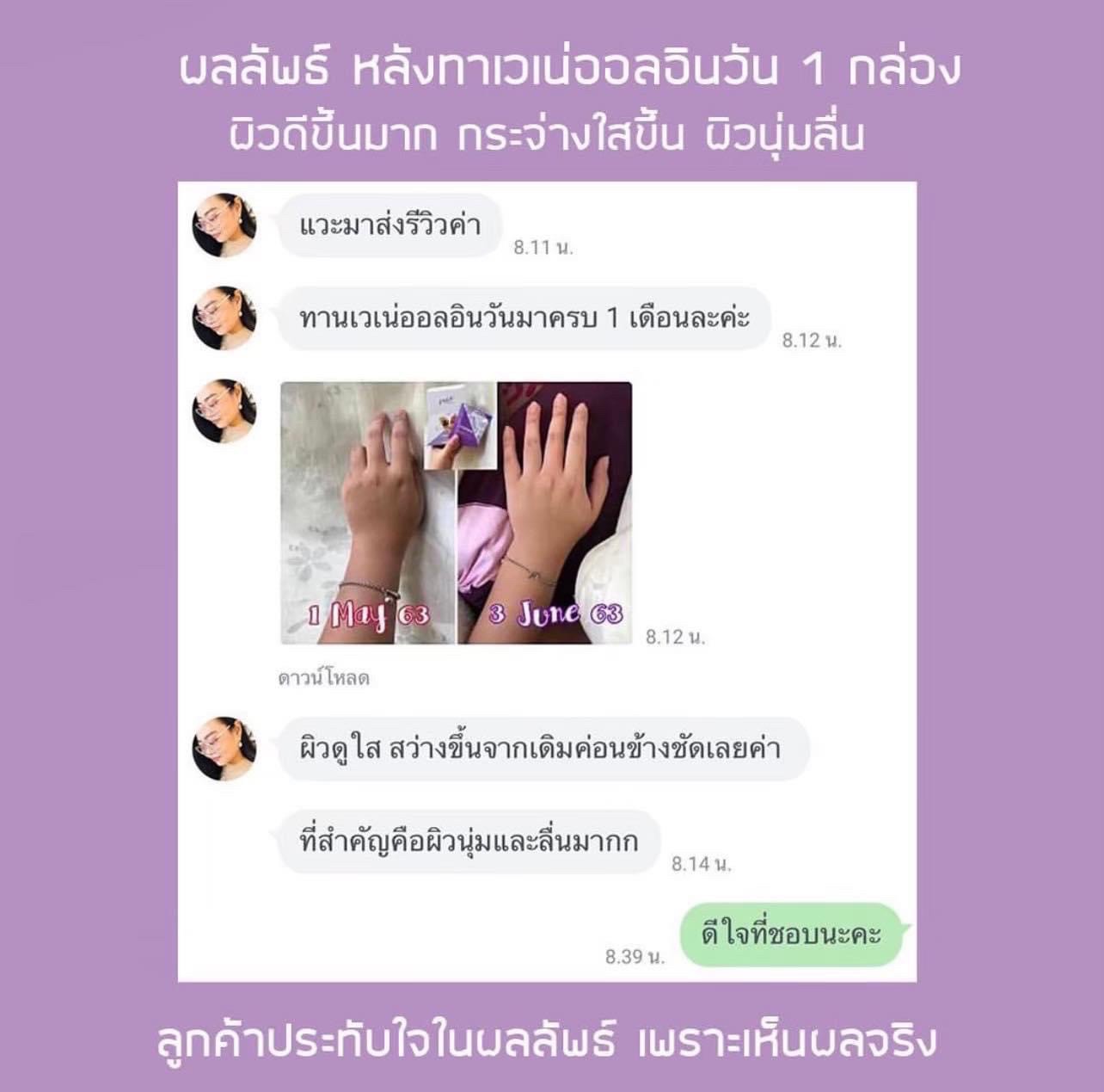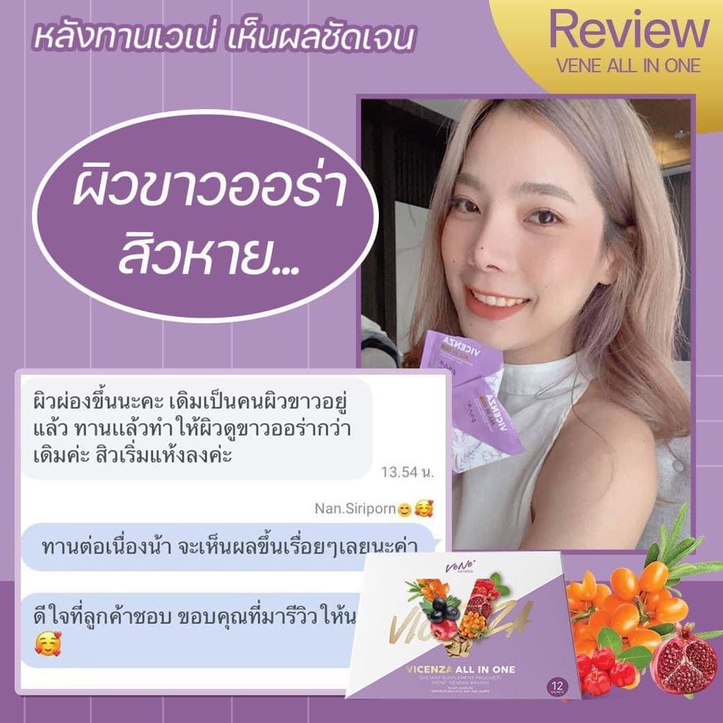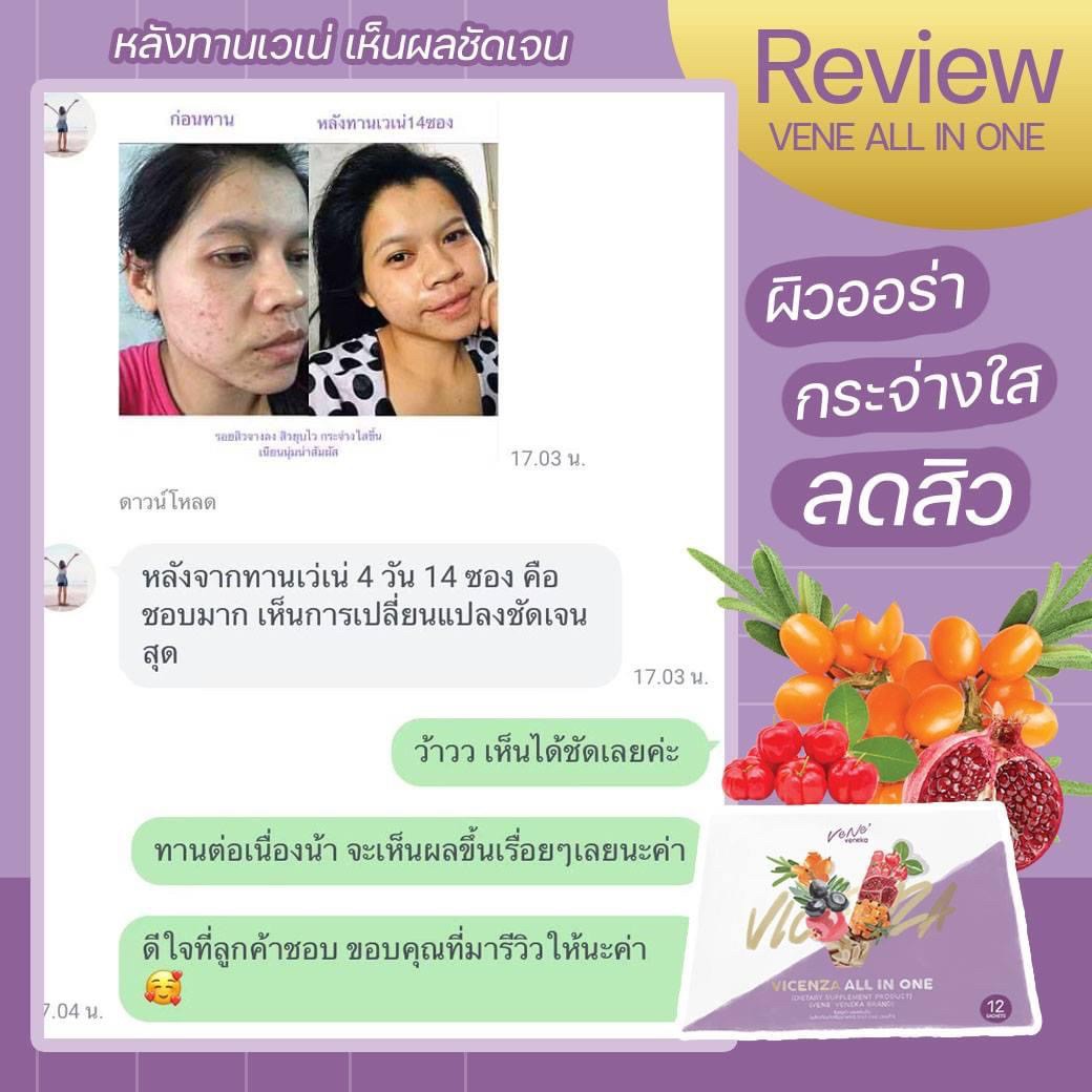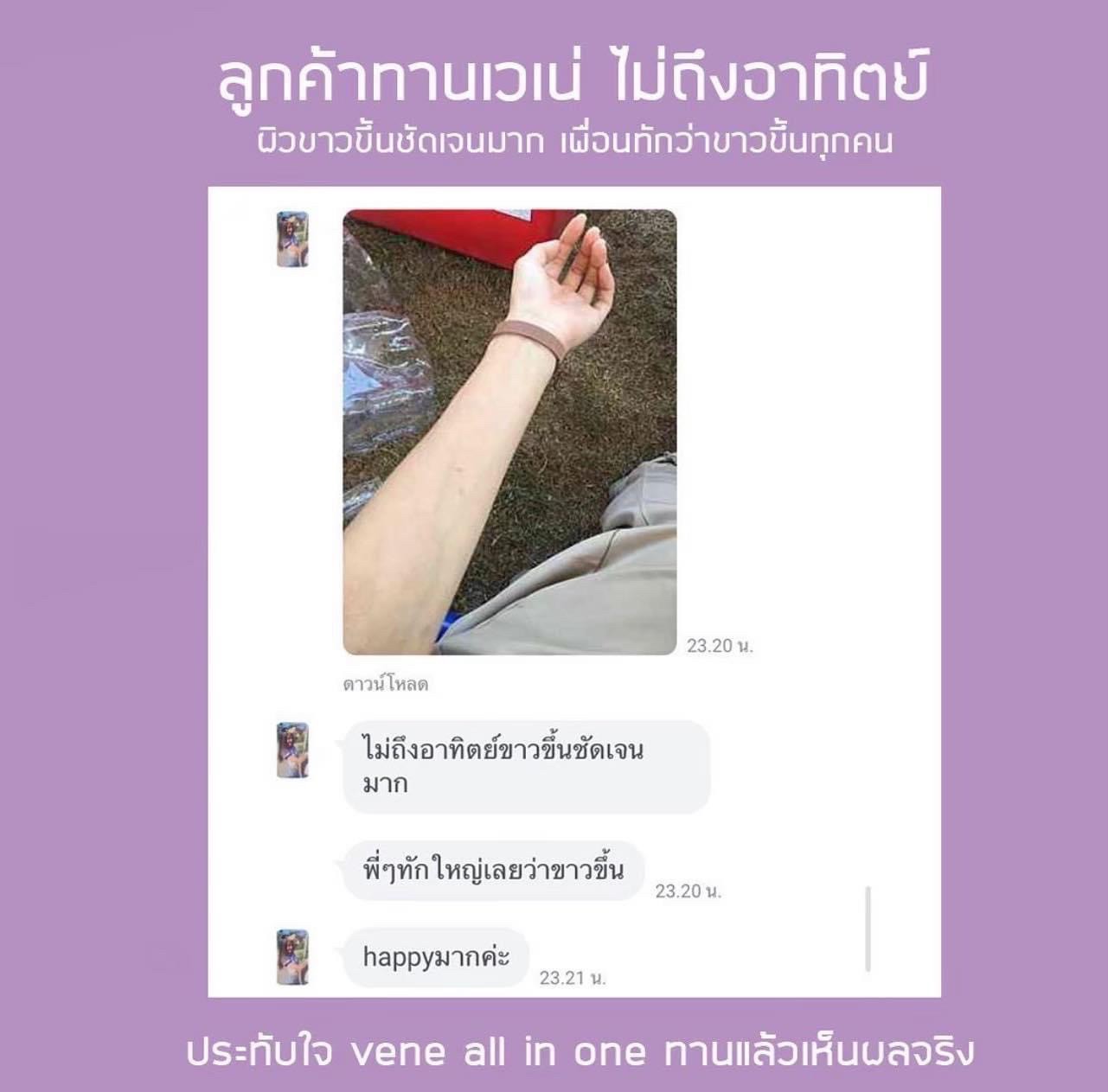 แวะมาส่งรีวิวค่ะ ทานเวเน่ออลอินวันมาครบ 1 เดือนละค่ะ ผิวดูใส สว่างขึ้นจากเดิมค่อนข้างชัดเจนเลยค่ะ ที่สำคัญคือ ผิวนุ่มและลื่นมาก |