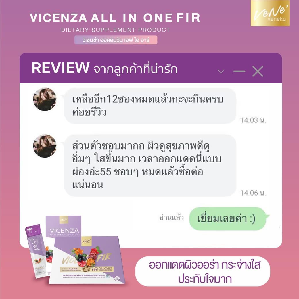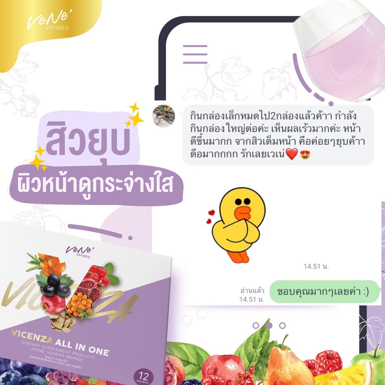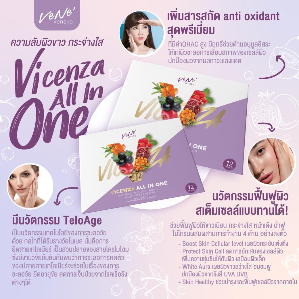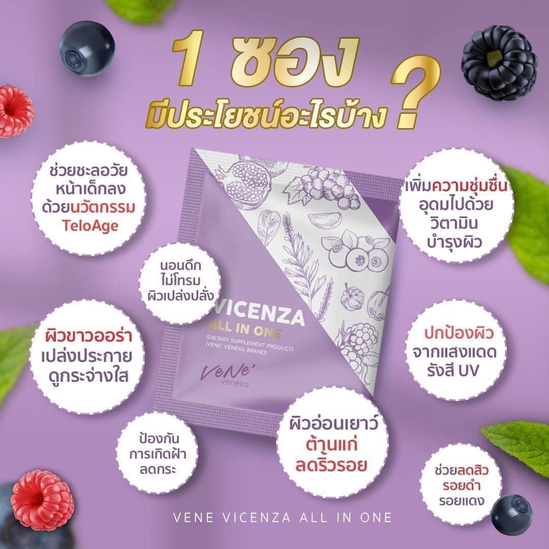 เลขที่จดแจ้ง 13-1-15859-5-0856 วิเซนซ่า ออลอินวัน เอฟ.ไอ.อาร์. (ผลิตภัณฑ์เสริมอาหาร) (ตรา เวเน่ เวเนก้า) Vicenza All in One F.I.R. (Dietary Supplement Product) (Vene' veneka brand) |