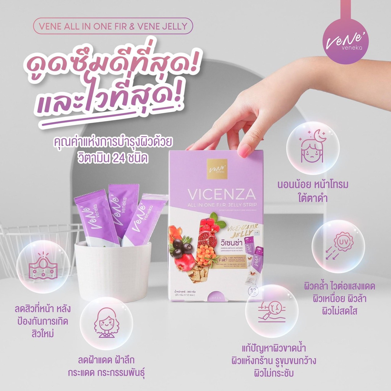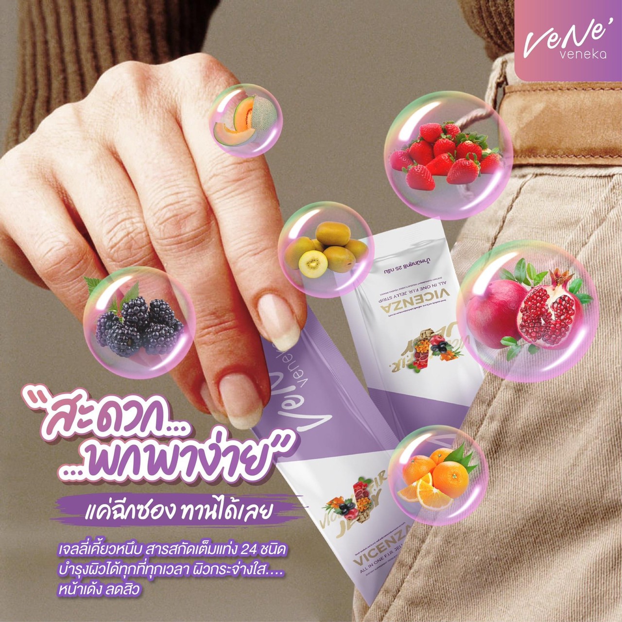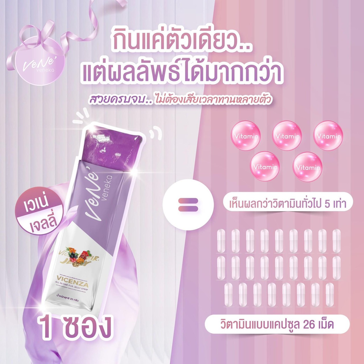 เวเน่ เวเนก้า ออลอินวัน เจลลี่ สตริป Vene' veneka all in one Jelly Strip กินแค่ตัวเดียว แต่ผลลัพธ์ได้มากกว่า สวยครบจบ ไม่ต้องเสียเวลาทานหลายตัว |