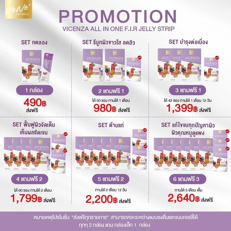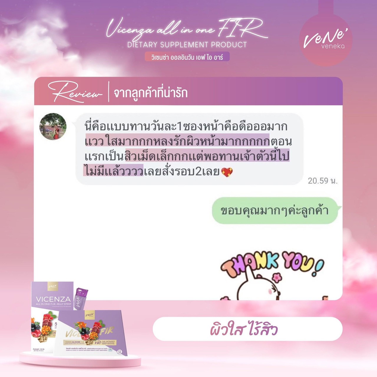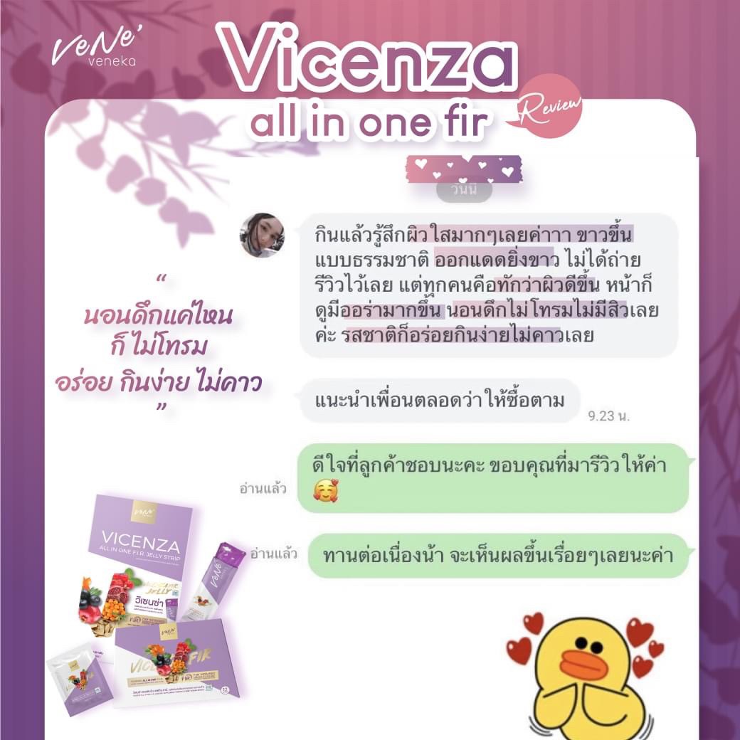 เลขที่จดแจ้ง 13-1-15859-5-0876 วิเซนซ่า ออลอินวัน เอฟ.ไอ.อาร์. เจลลี่ สตริป (ผลิตภัณฑ์เสริมอาหาร) (ตรา เวเน่ เวเนก้า) Vicenza all in one F.I.R. Jelly Strip (Dietary Supplement Product) (Vene' veneka brand) |