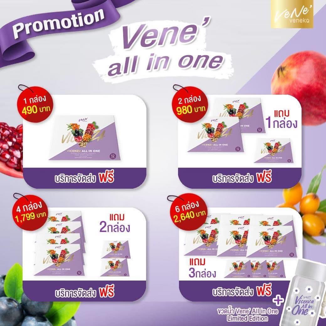 ราคาและโปรโมชั่น เวเน่ เวเนก้า ออลอินวัน Vene' veneka all in one 1 กล่อง ราคา 490 บาท 2 กล่อง แถม 1 กล่อง ราคา 980 บาท 4 กล่อง แถม 2 กล่อง ราคา 1,799 บาท 6 กล่อง แถม 3 กล่อง ราคา 2,640 บาท จัดส่งฟรี มีบริการเก็บเงินปลายทาง |