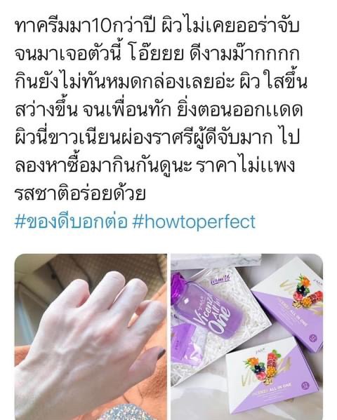ทานดีมากเลยค่ะ มีแต่คนทักว่าขาวขึ้นทั้งนั้นเลย กลับต่างจังหวัดเมื่ออาทิตย์ที่แล้ว พวกญาติๆบอกเหมือนหลอดนีออนเดินได้เลยค่ะ |
