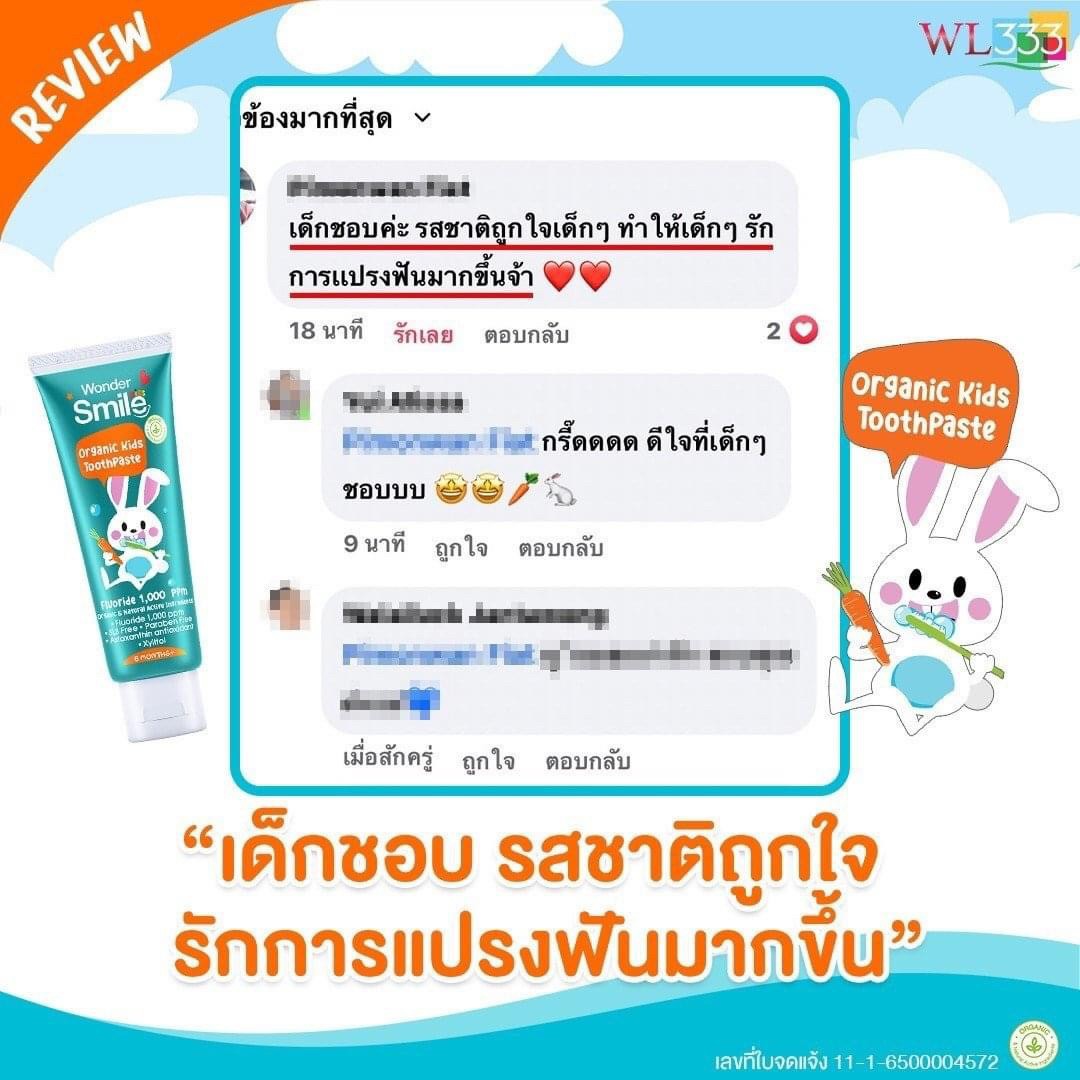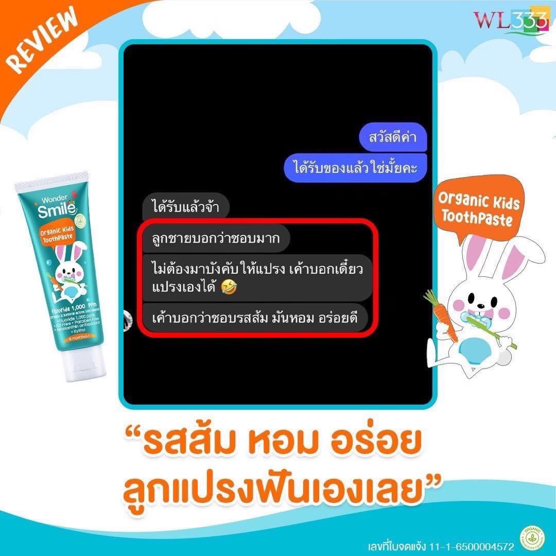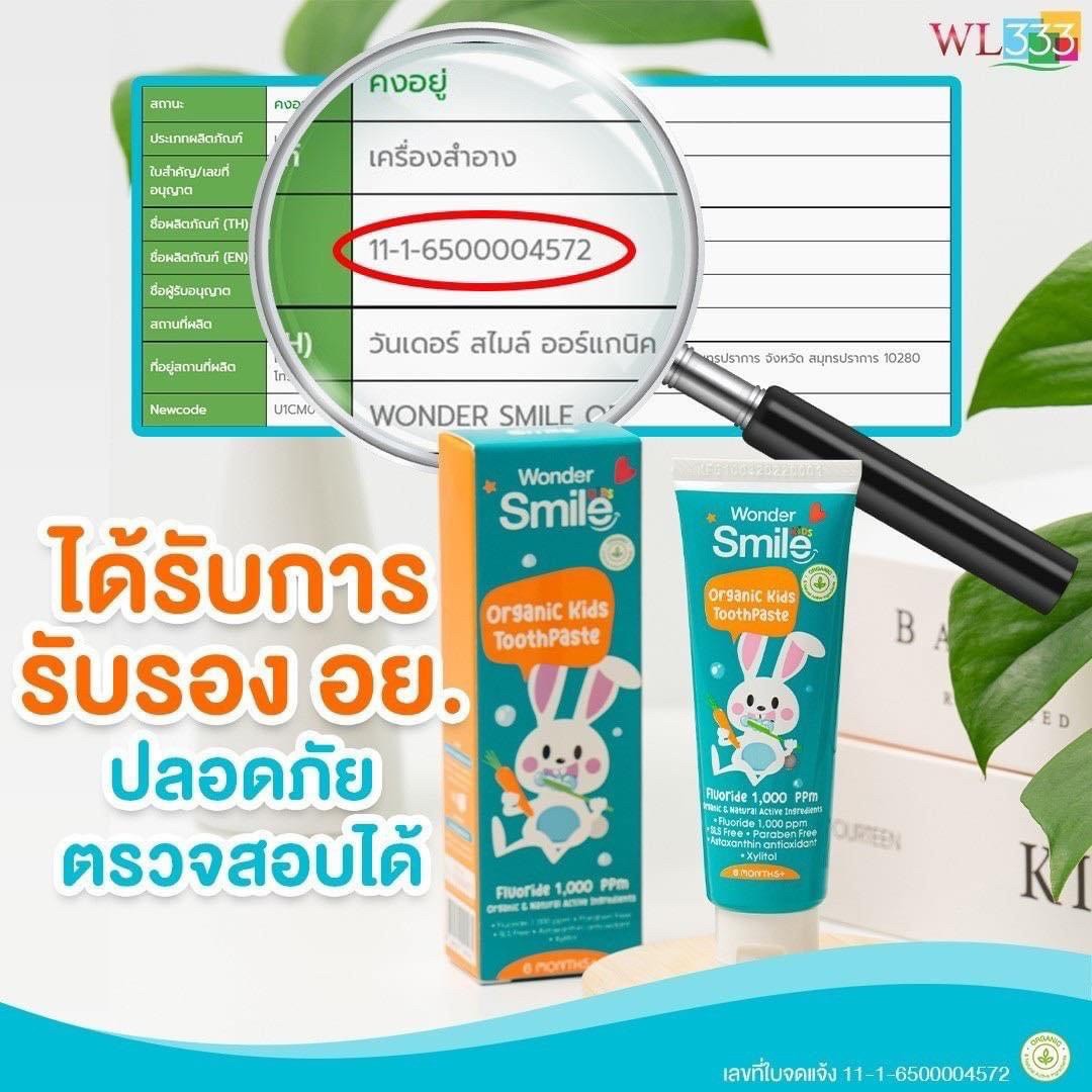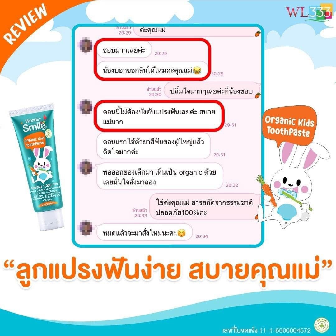 เลขที่จดแจ้ง 11-1-6500004572 วันเดอร์ สไมล์ ออร์แกนิค คิดส์ ทูธเพส WONDER SMILE ORGANIC KIDS TOOTHPASTE |