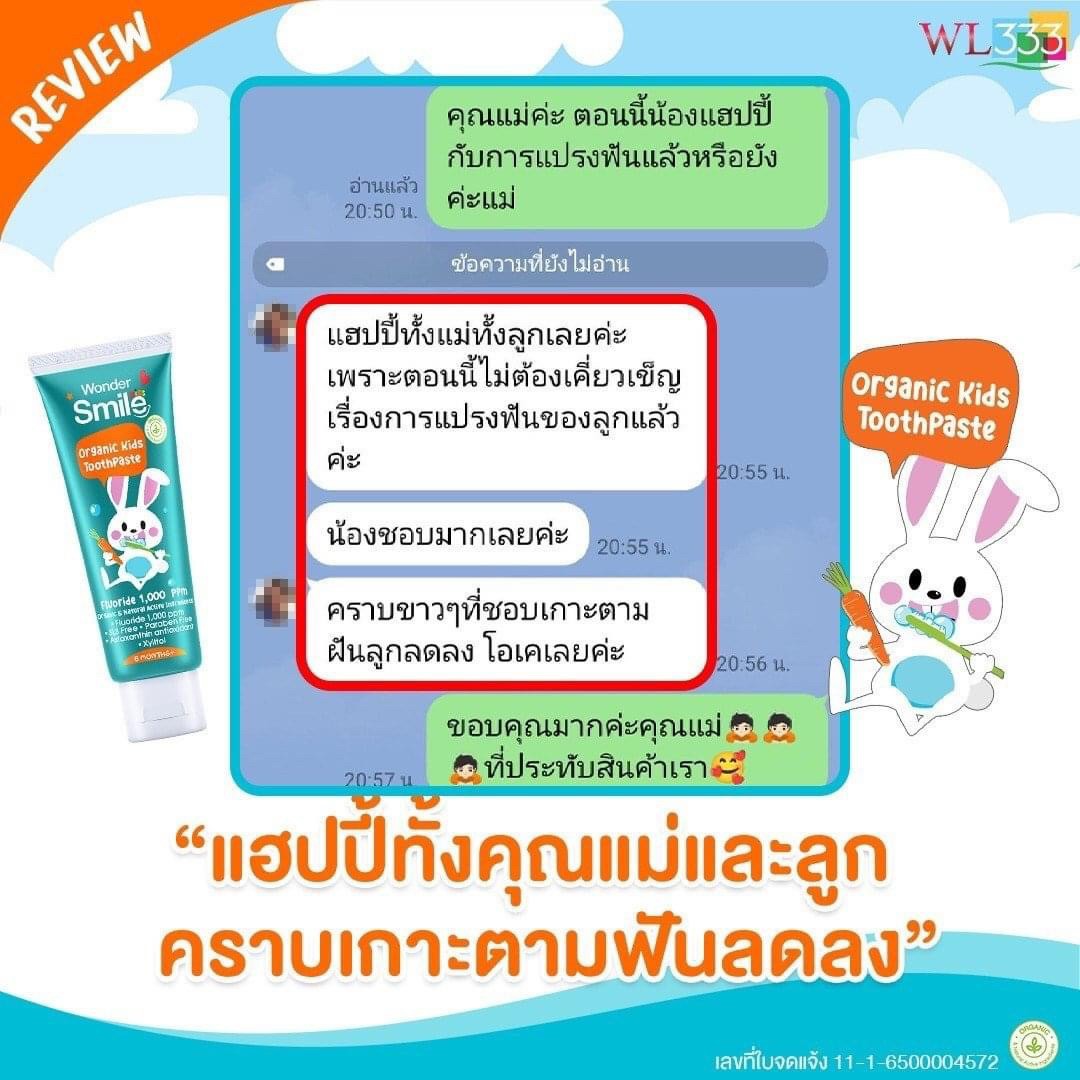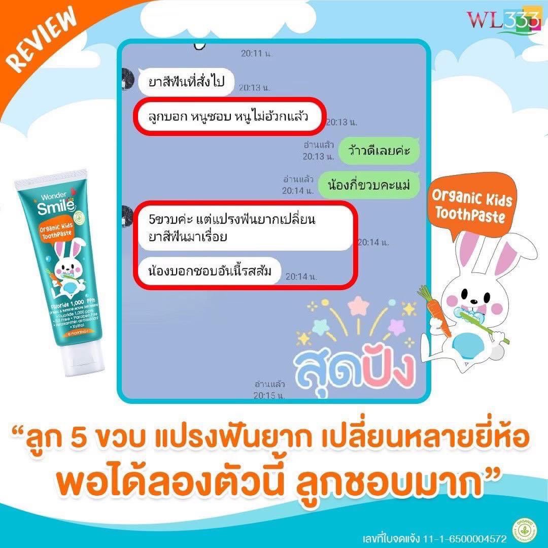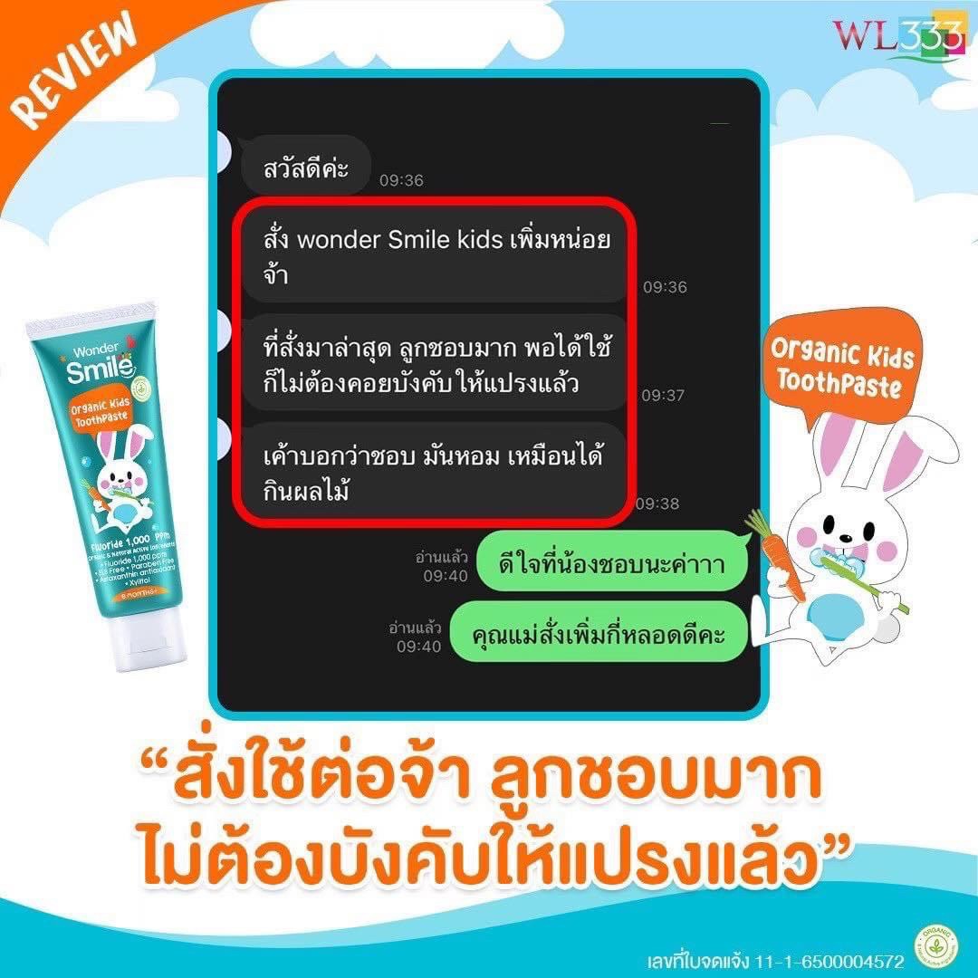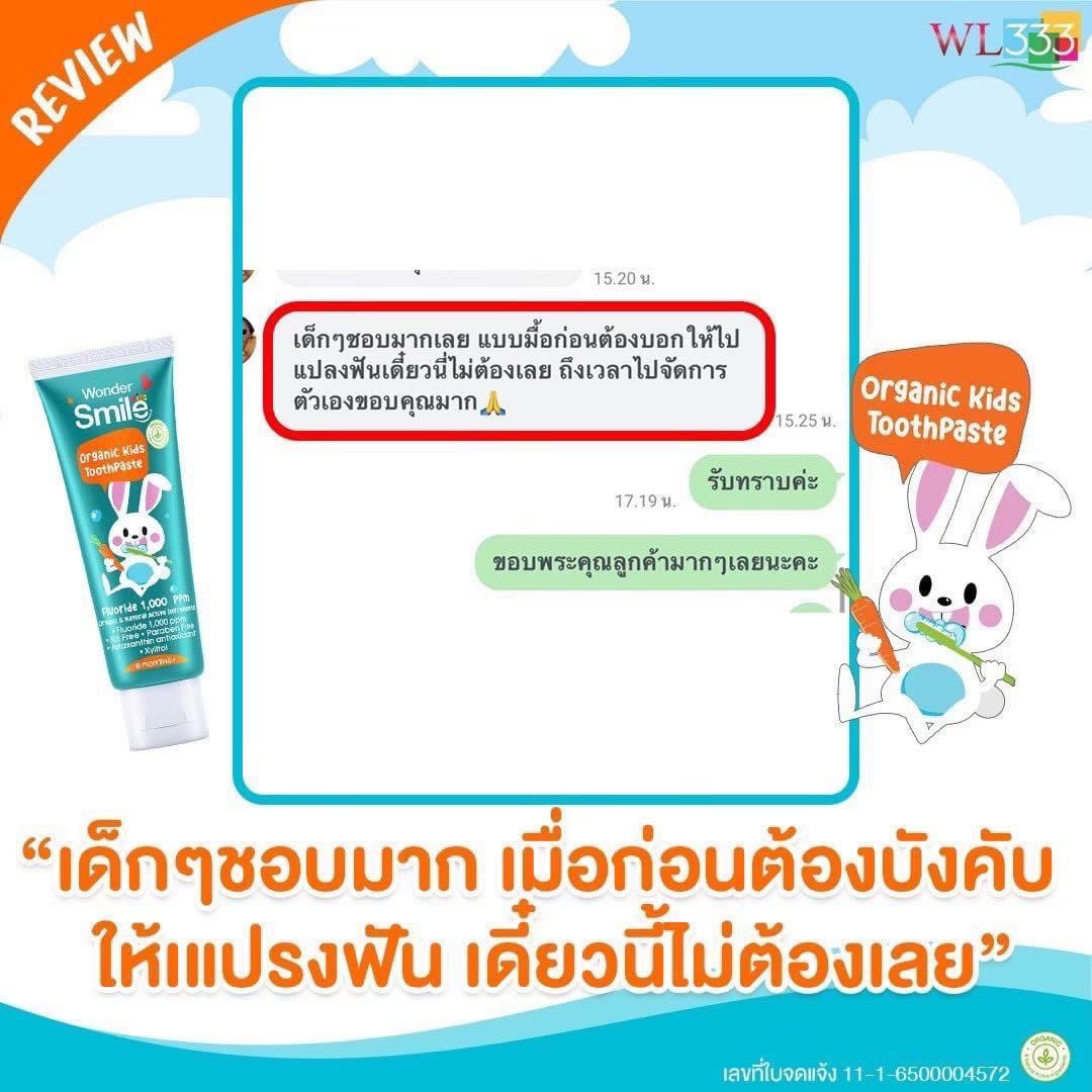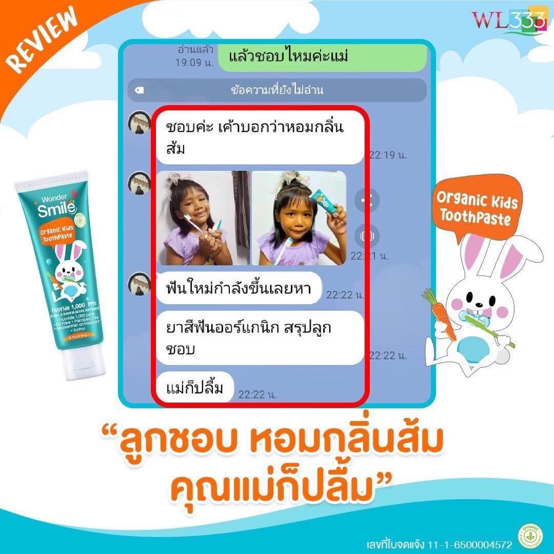 เลขที่จดแจ้ง 11-1-6500004572 วันเดอร์ สไมล์ ออร์แกนิค คิดส์ ทูธเพส WONDER SMILE ORGANIC KIDS TOOTHPASTE |