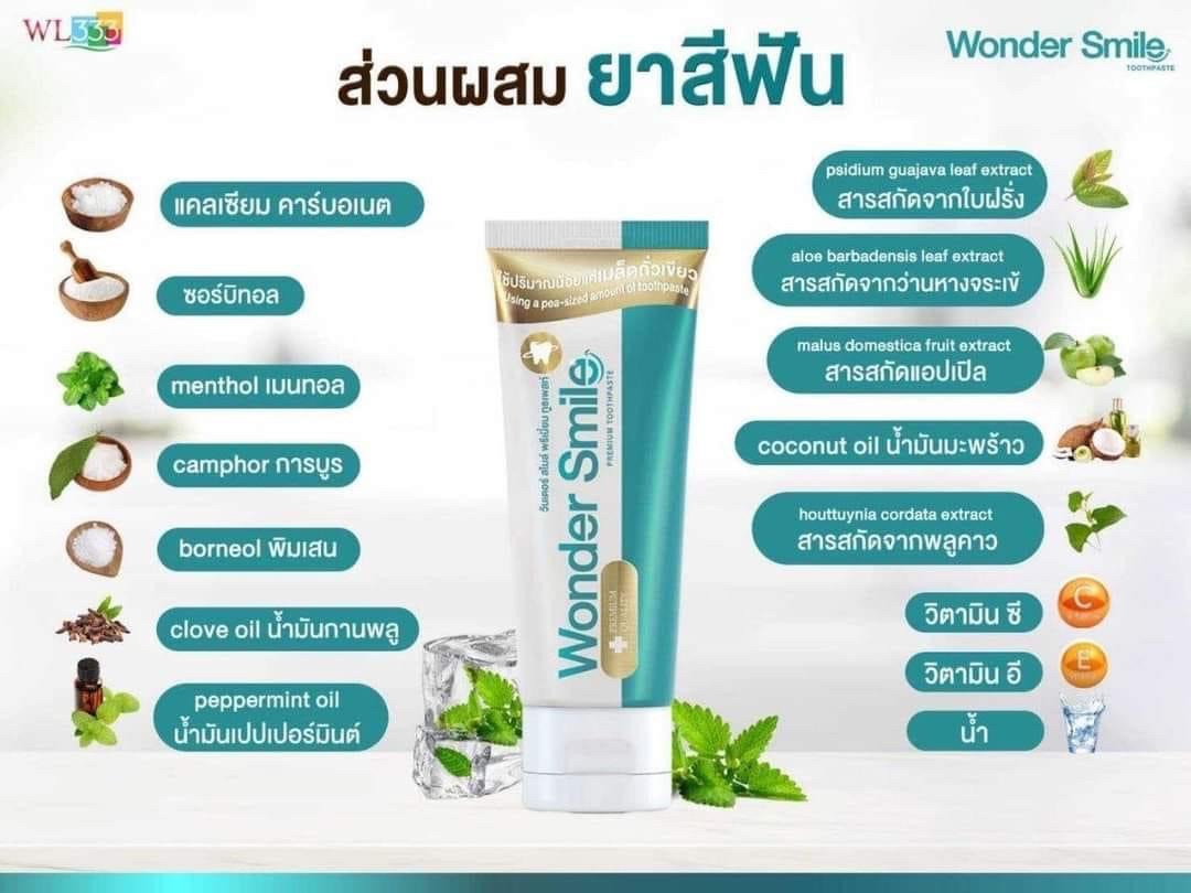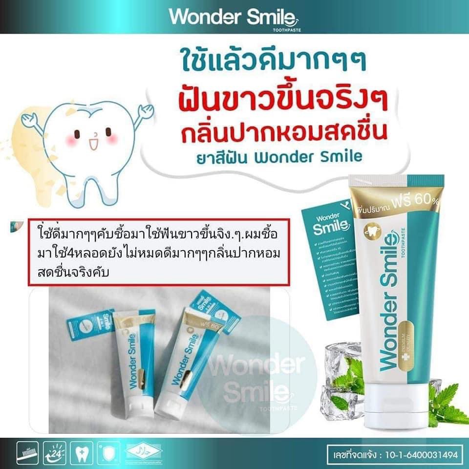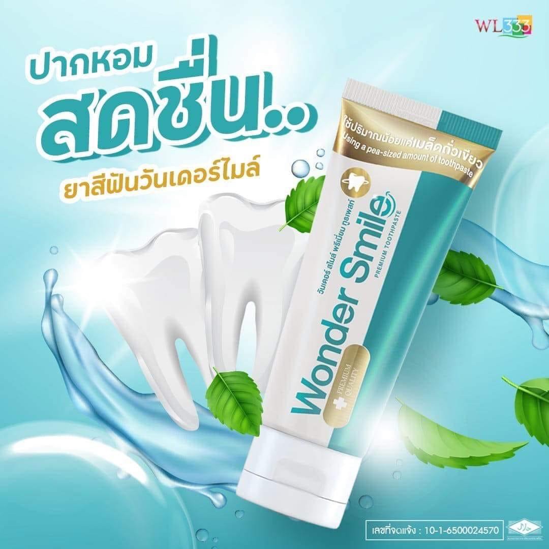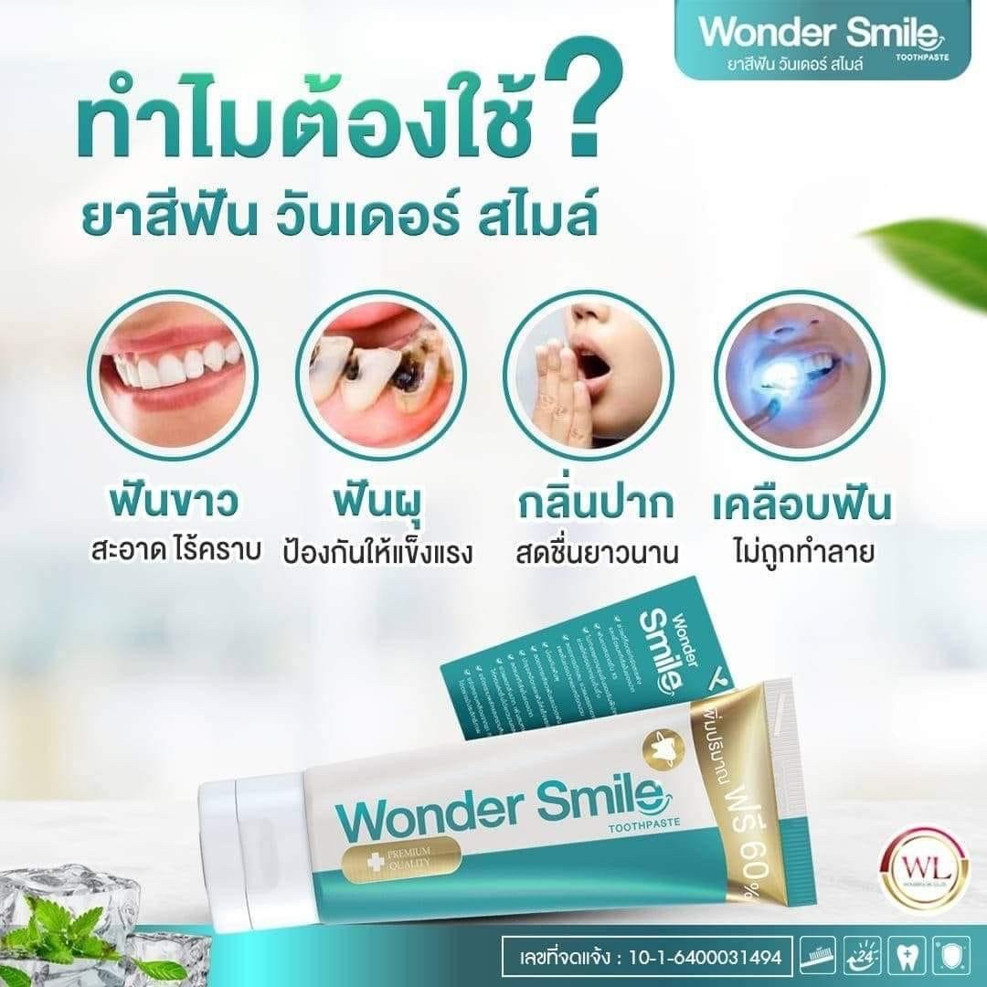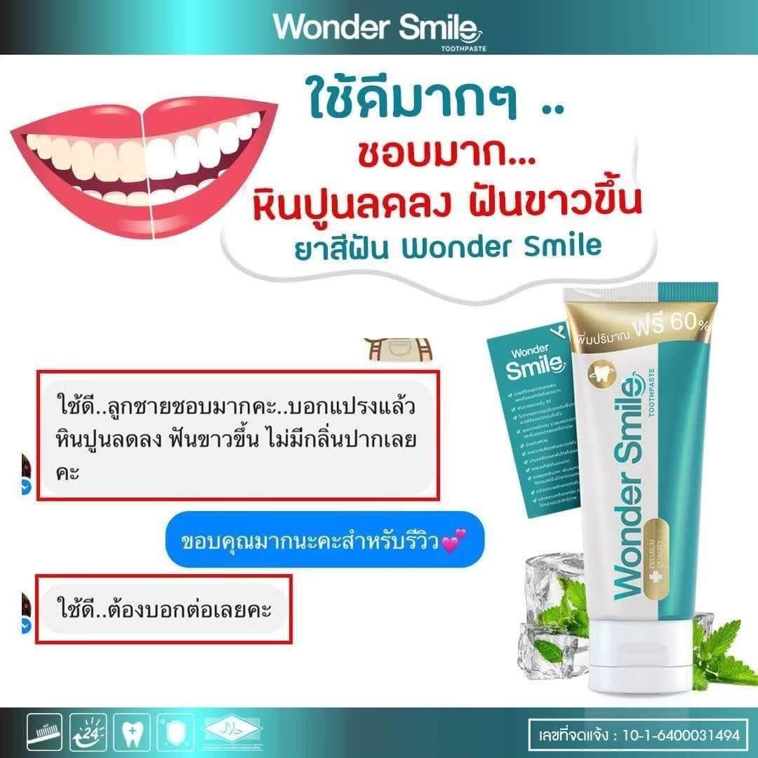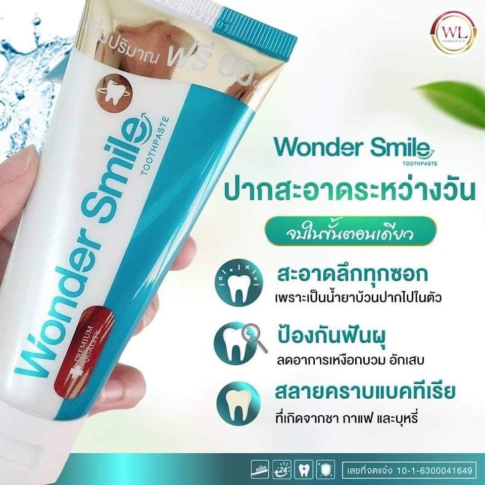 ยาสีฟัน วันเดอร์สไมล์ Wonder Smile ✅ ลดคราบหินปูน ฟันขาวขึ้น ✅ ลดกลิ่นปาก ดับกลิ่นปาก ✅ ป้องกันฟันผุ ฟันแข็งแรง ✅ ลดการอักเสบของเหงือก ✅ ไม่ทำลายสารเคลือบฟัน |